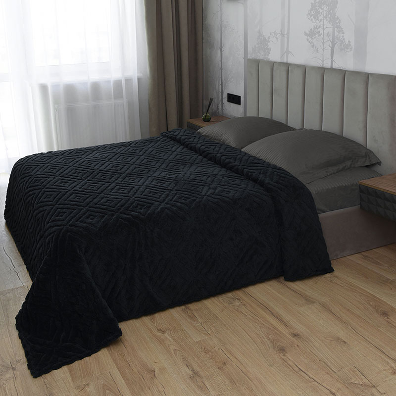 Плед велсофт "Ромбы" графит (последний размер) 200х220