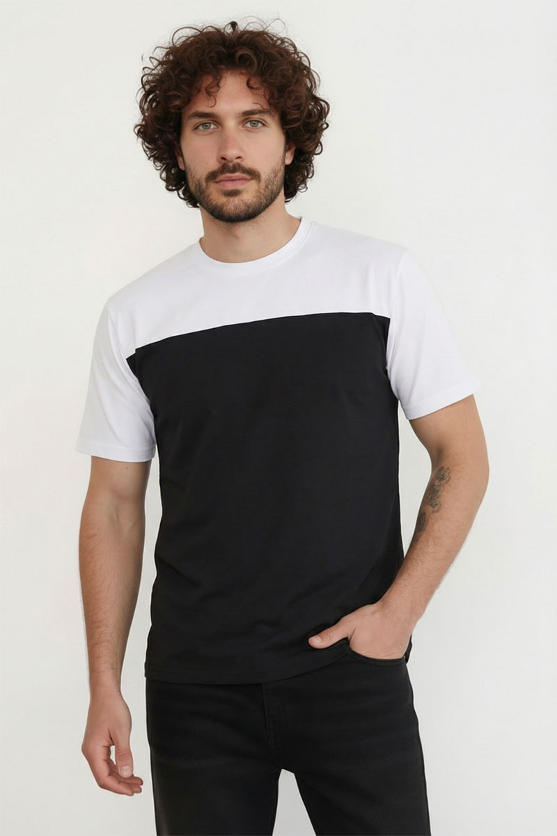 Представляем Вашему вниманию современную мужскую футболку прямого кроя, выполненную из мягкой и приятной на ощупь ткани. Двухцветный дизайн с контрастной вставкой на плечах и рукавах придаёт моделям стильный и динамичный вид. Классический круглый вырез горловины обеспечивает комфорт посадки. Идеальный выбор для повседневного гардероба, легко сочетаются с джинсами и брюками, подойдут как для активного отдыха, так и для городской прогулки.