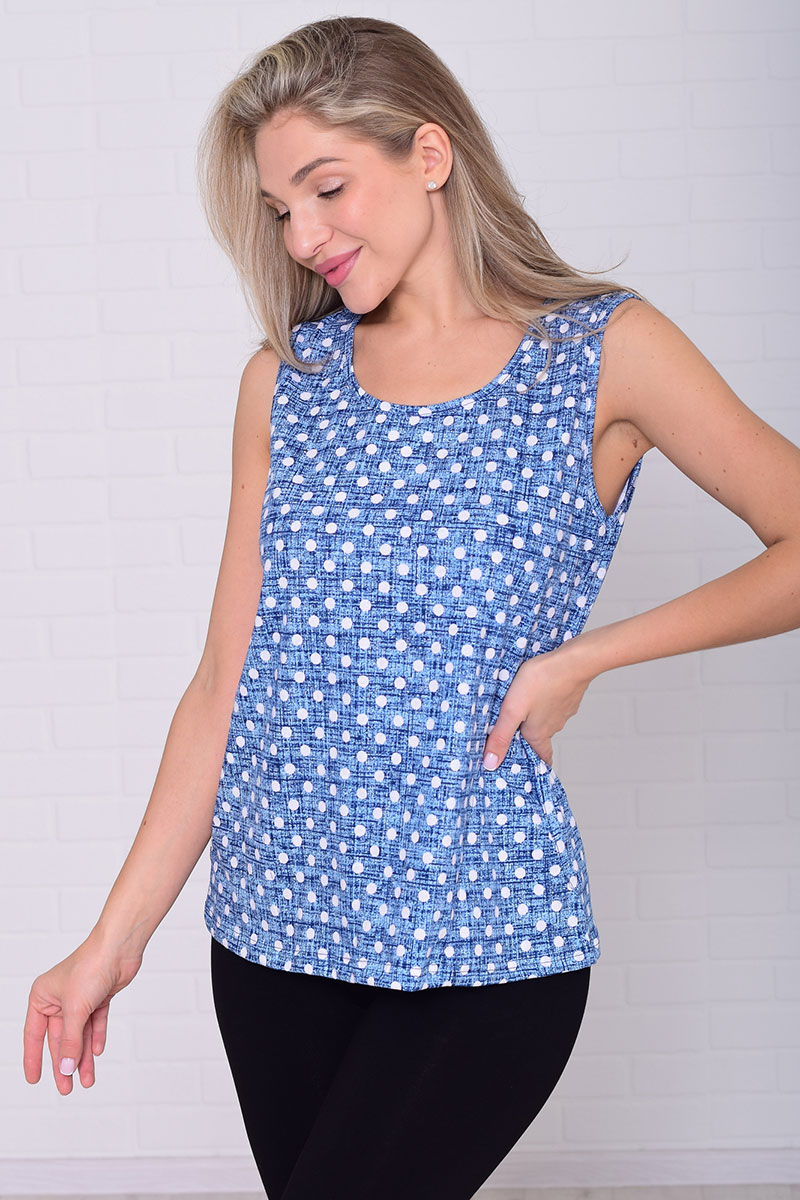 Майка женская 6217н кулирка (р-ры: 46-64) голубой горох
