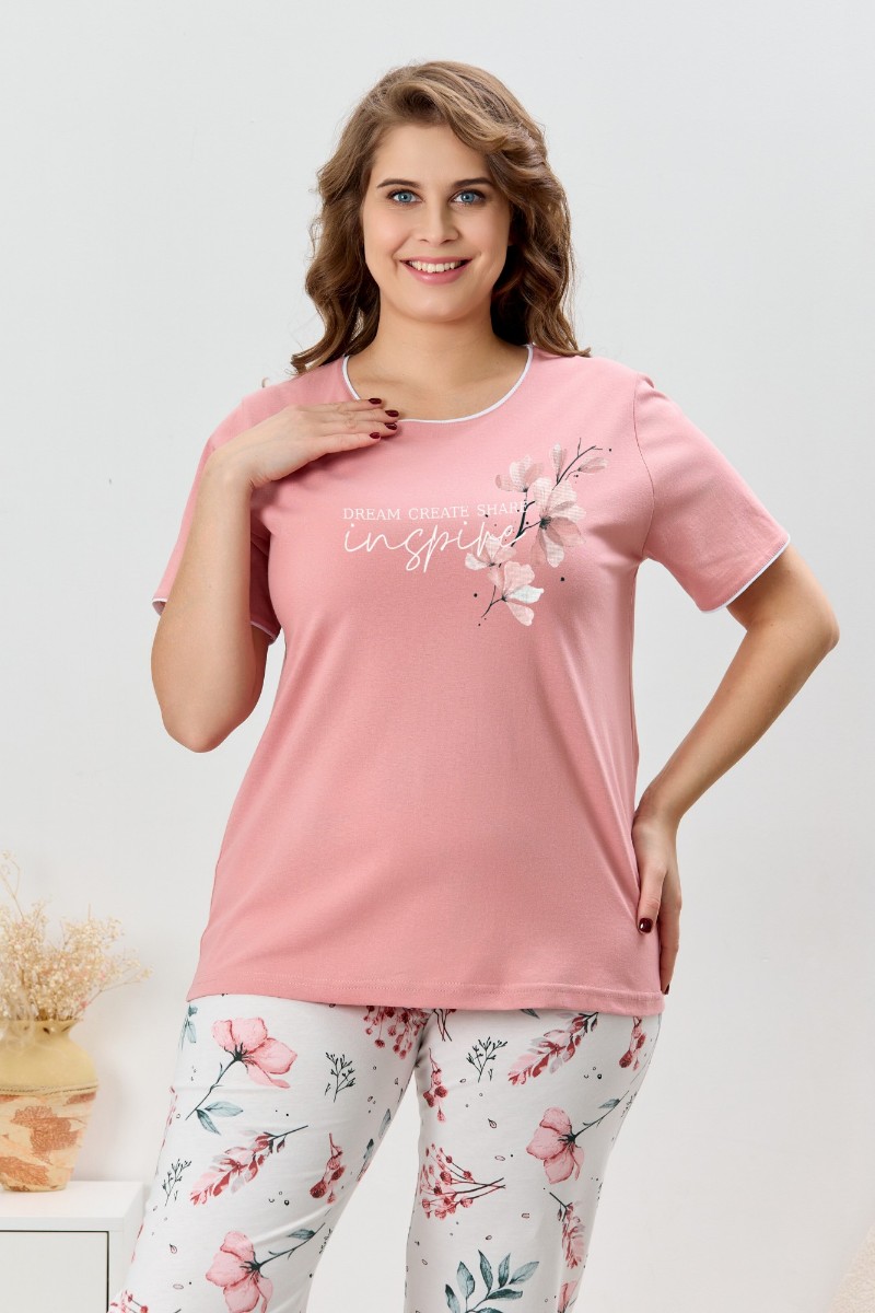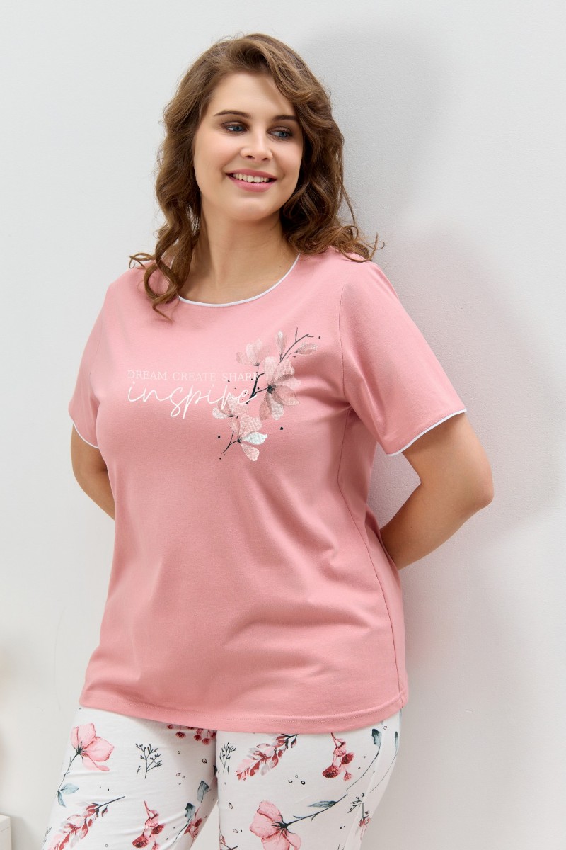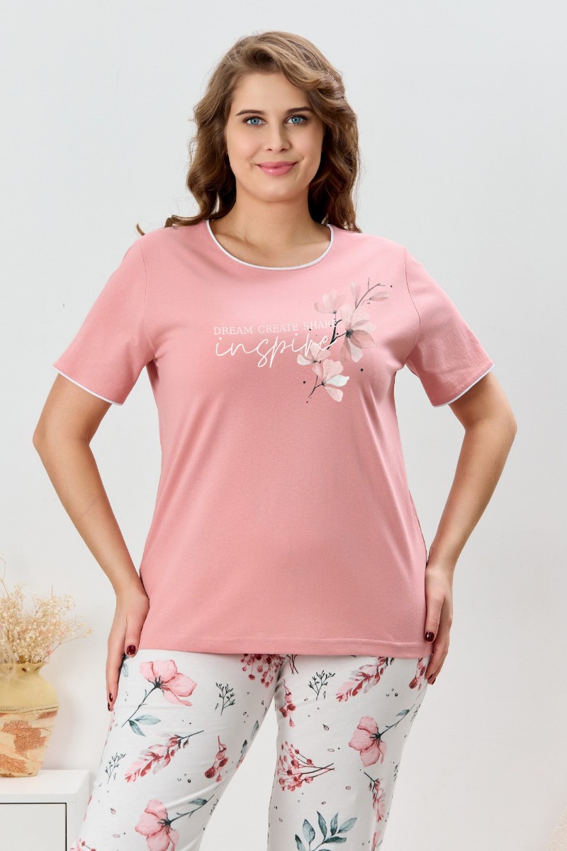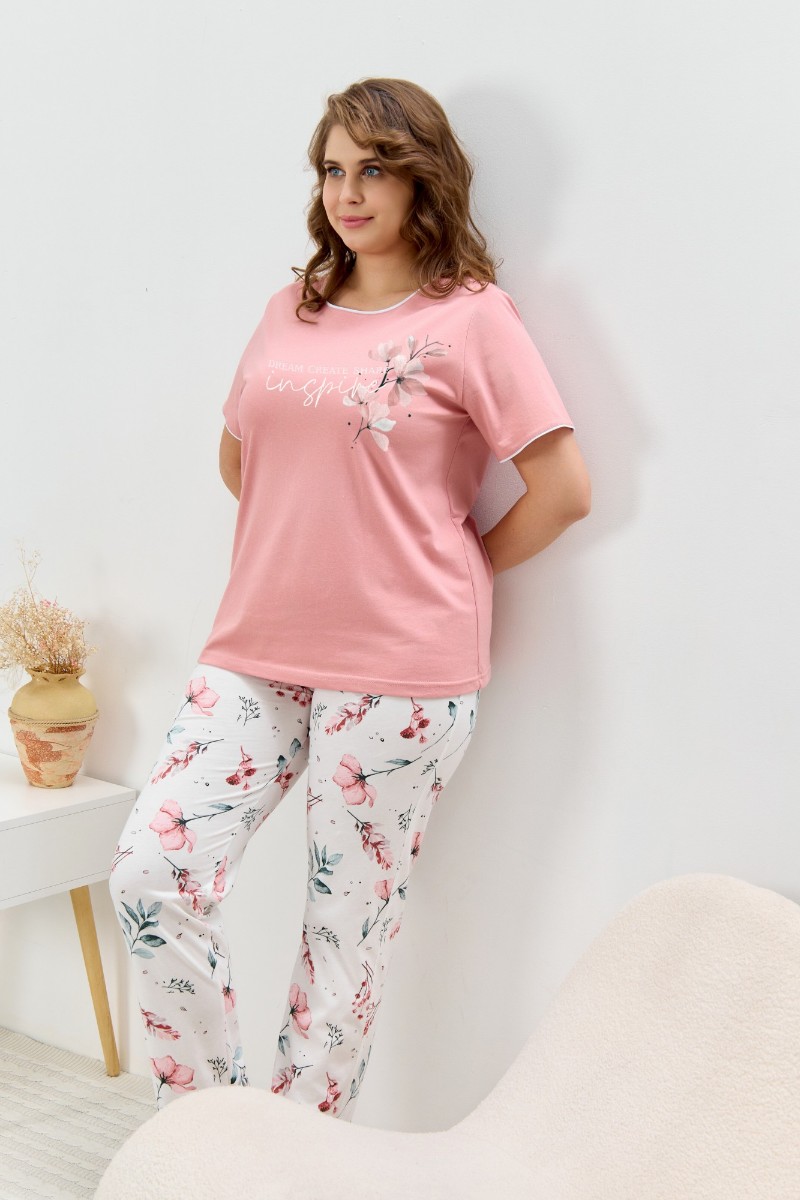 Пижама женская "Узор-2" кулирка (р-ры: 48-58) сухая роза