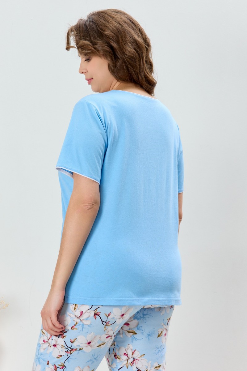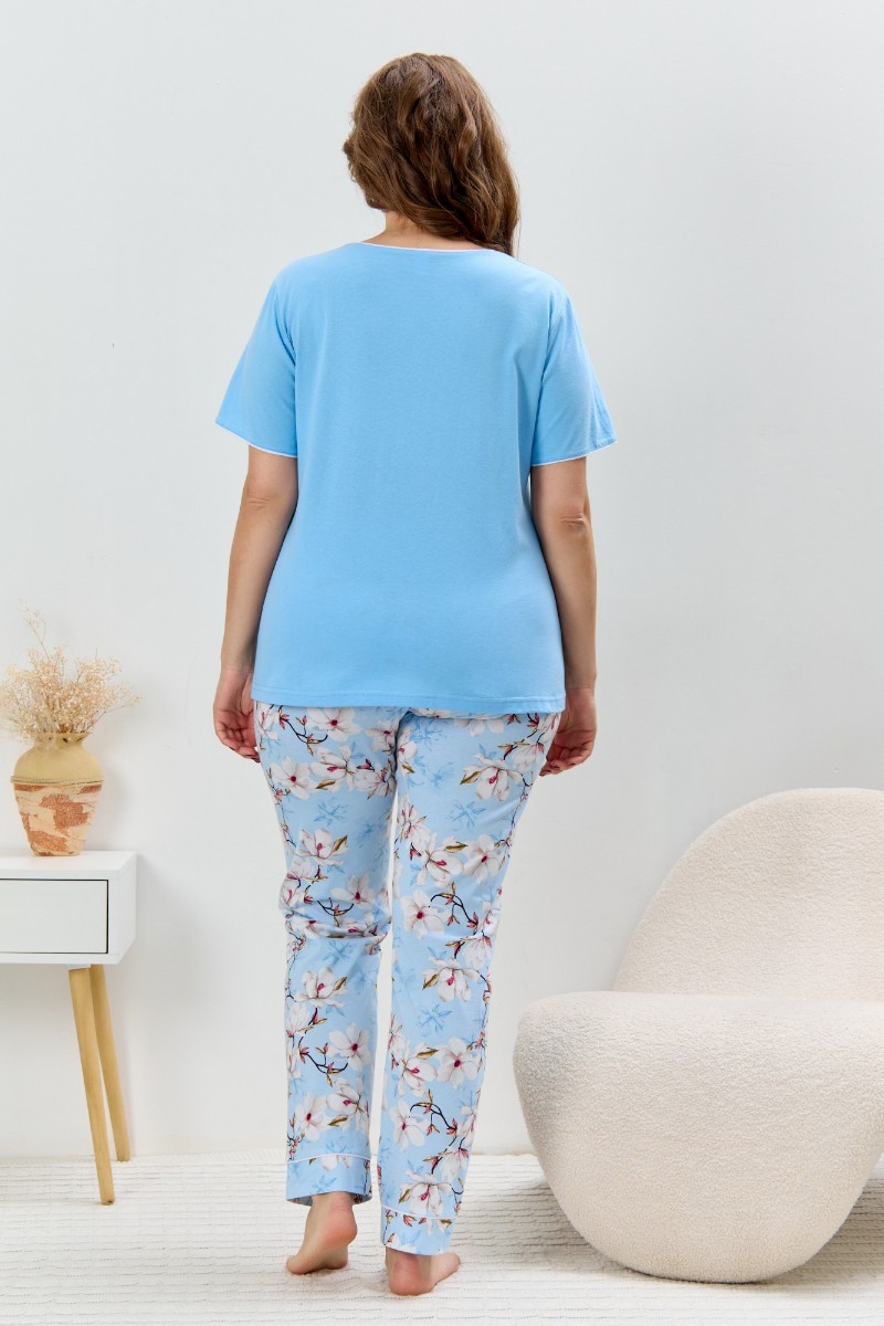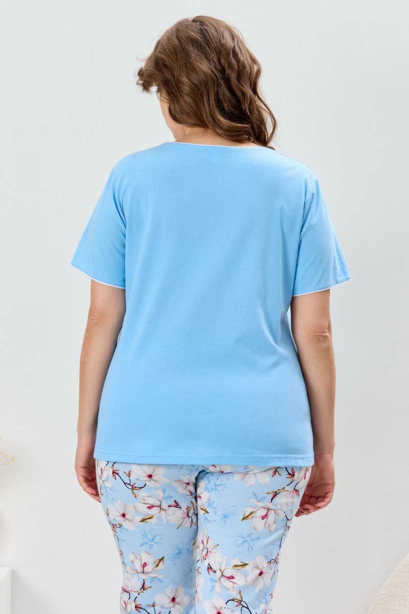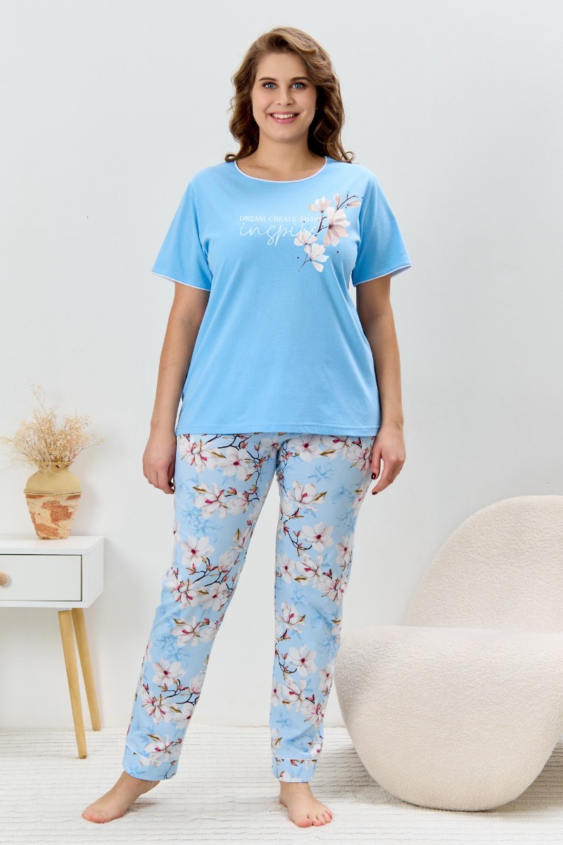 Пижама женская "Узор-2" кулирка (р-ры: 48-58) голубой