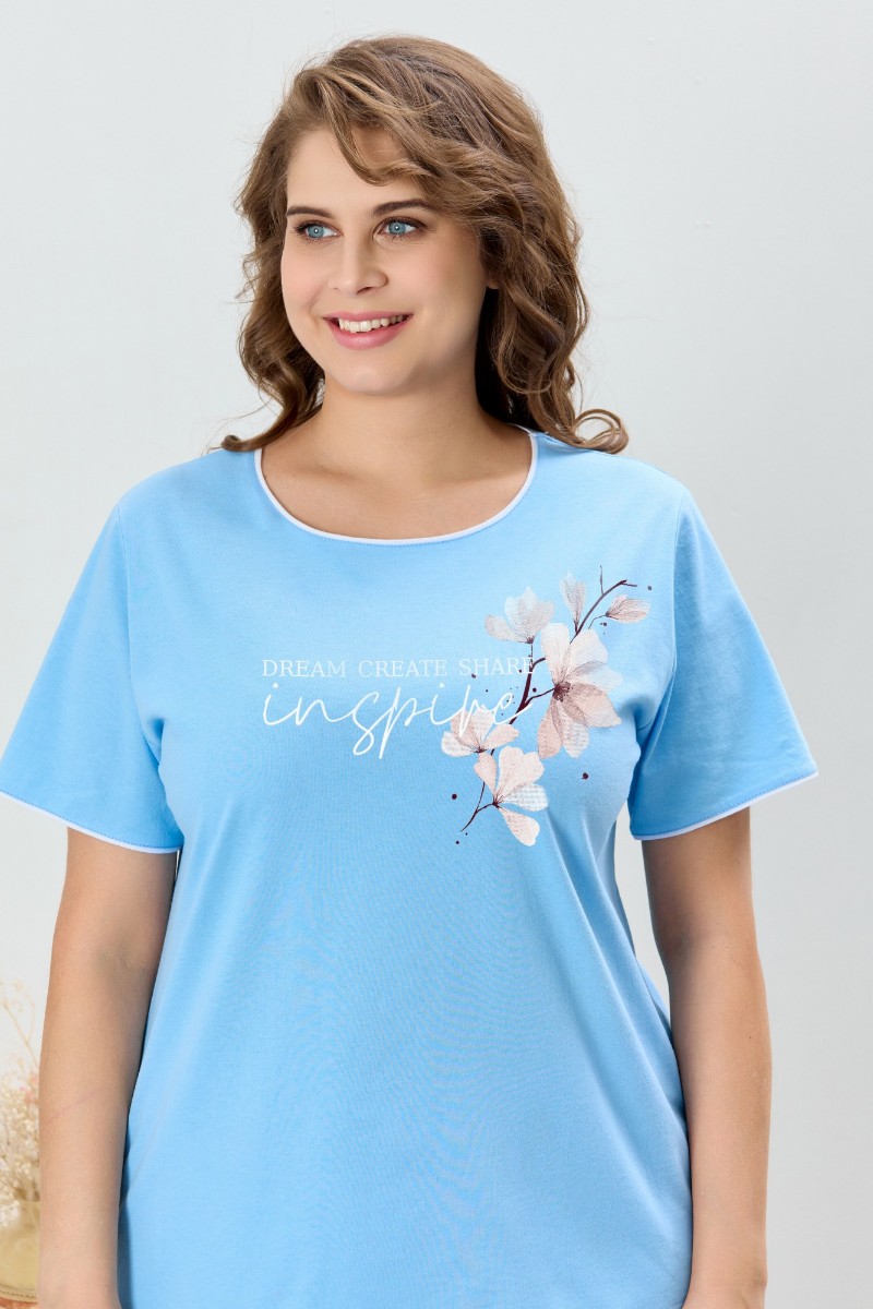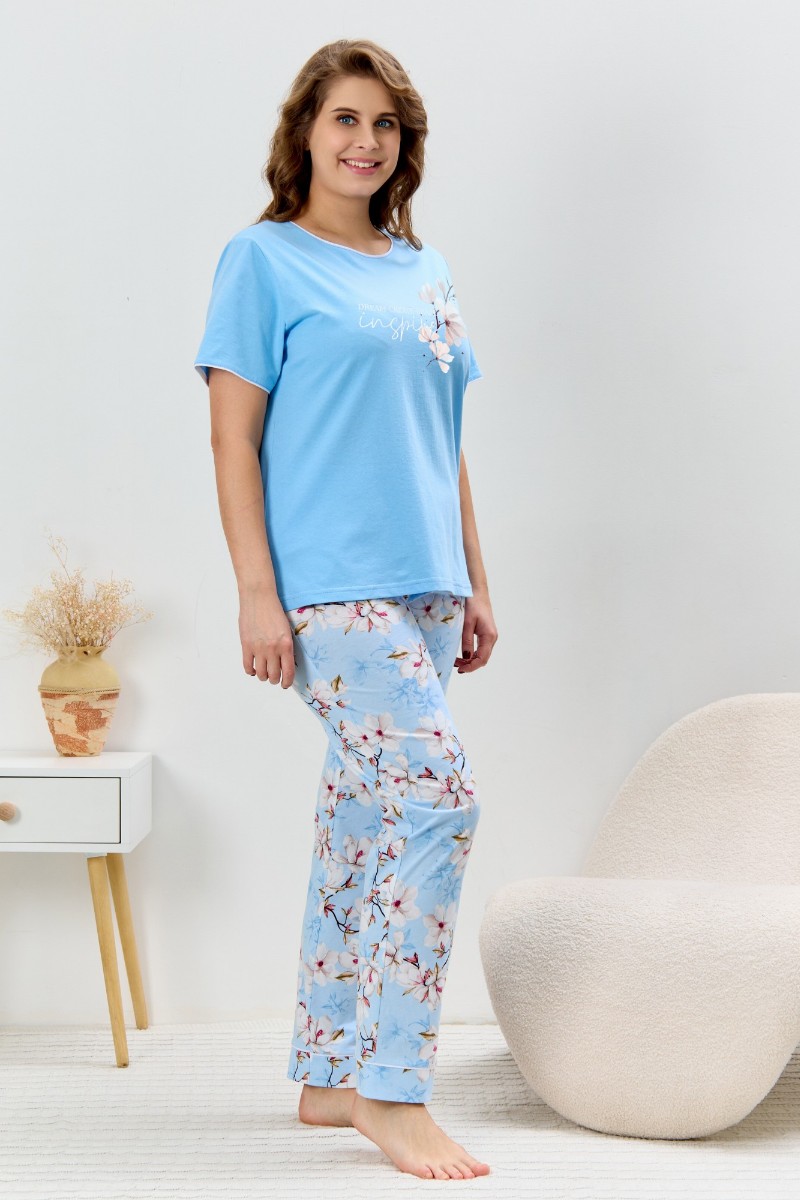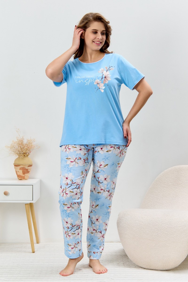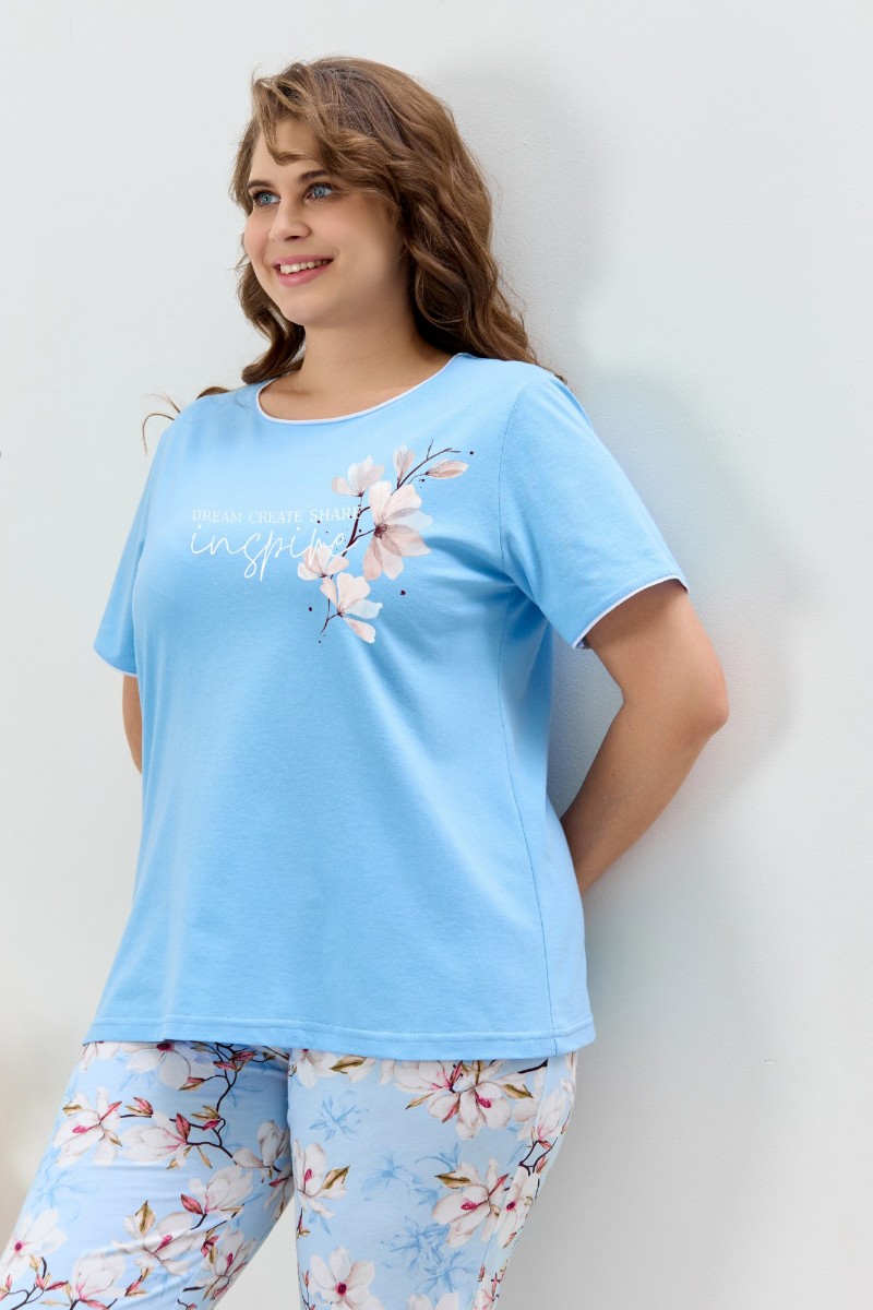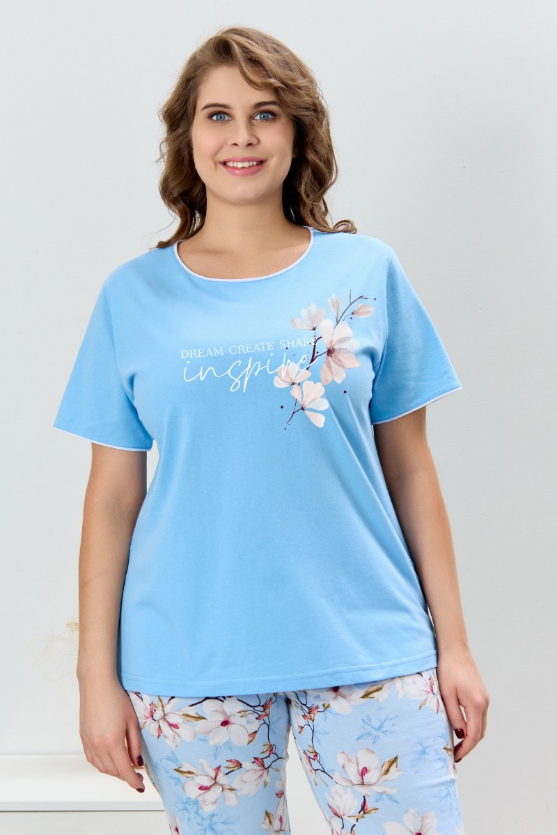 Пижама женская "Узор-2" кулирка (р-ры: 48-58) голубой
