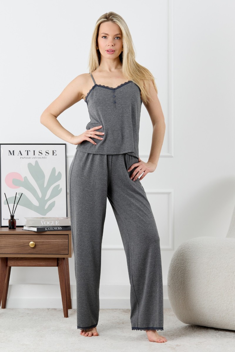 Пижама женская "Рива-2" кулирка с лайкрой (р-ры: 44-54) темно-серый меланж