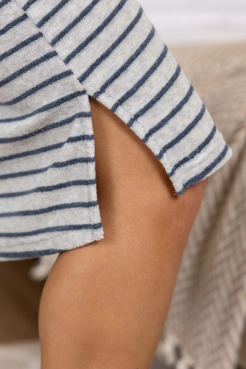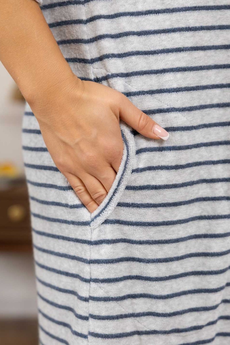 Халат женский 1929/2 махра (р-ры: 48-58) синий-серый