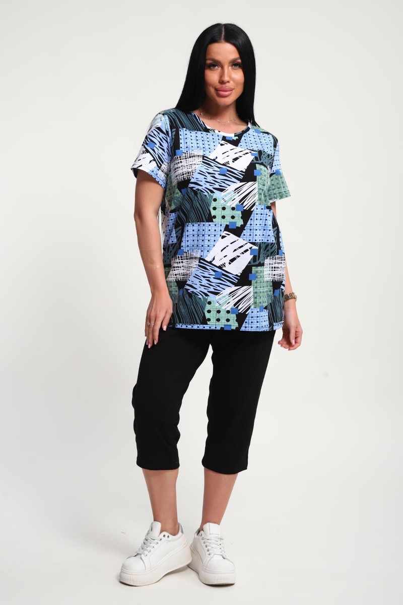 Костюм двойка женский 01073 кулирка (р-ры: 50-62) голубой