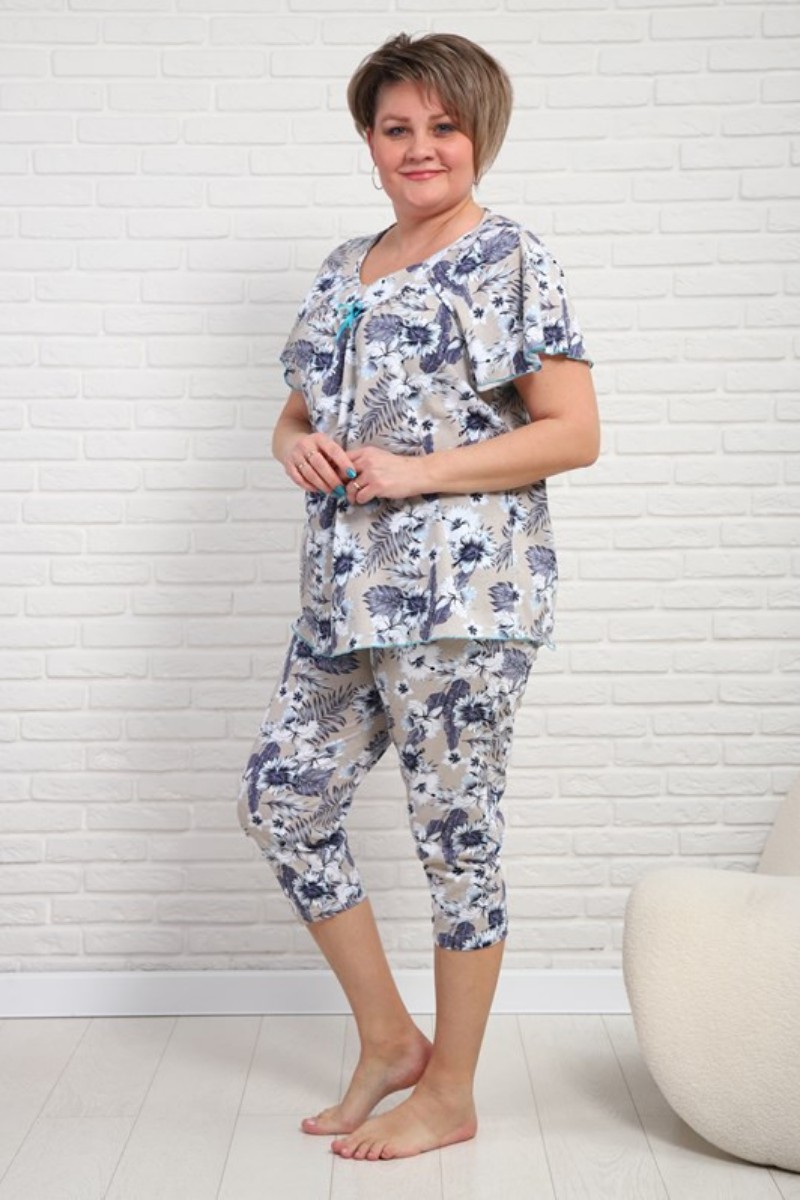 Представляем Вашему вниманию удобную и практичную женскую пижаму с бриджами, отдых в которой будет максимально приятным и расслабляющим. Изящный комплект, украшенный нежным принтом, выполнен из высококачественного, натурального материала, который хорошо пропускает воздух, позволяя коже дышать.