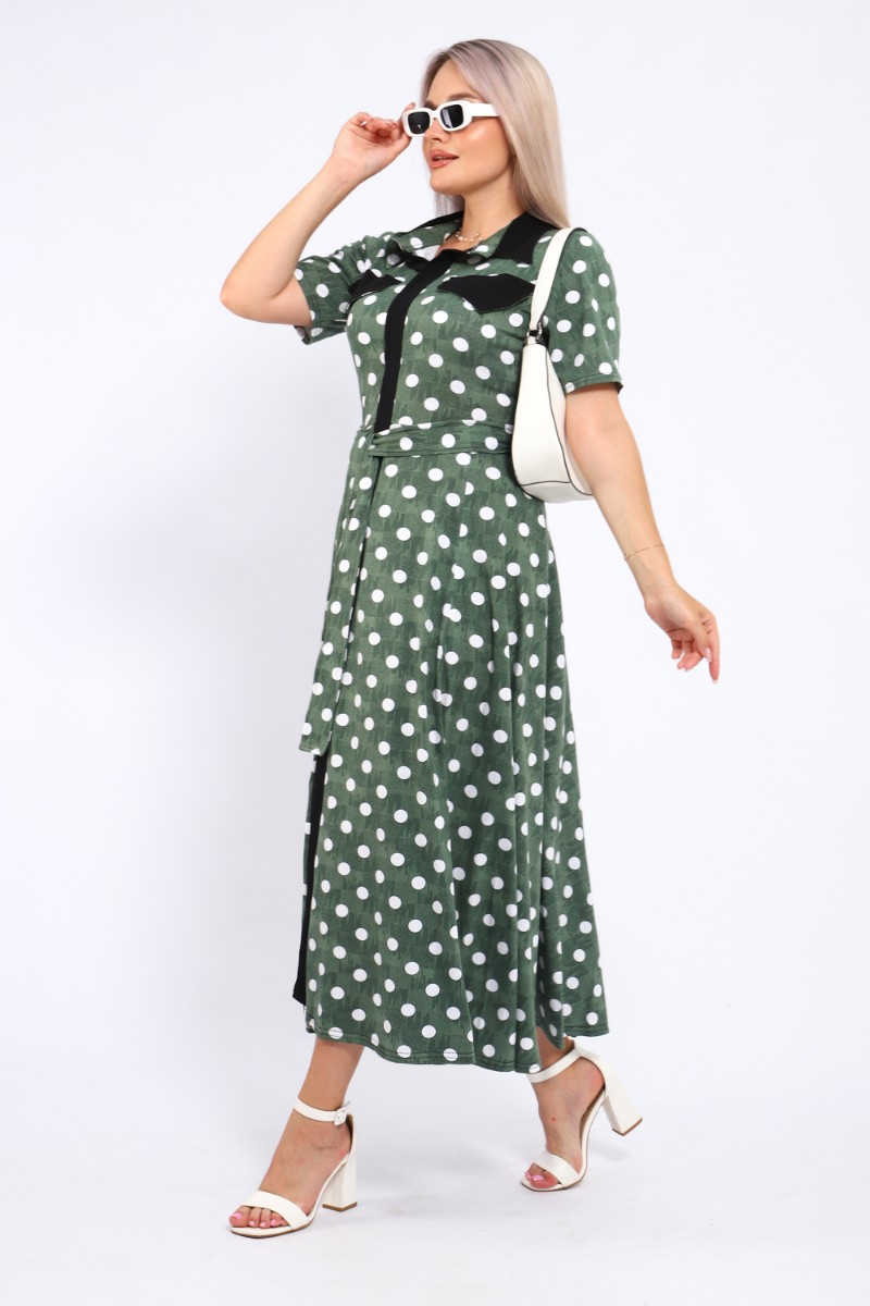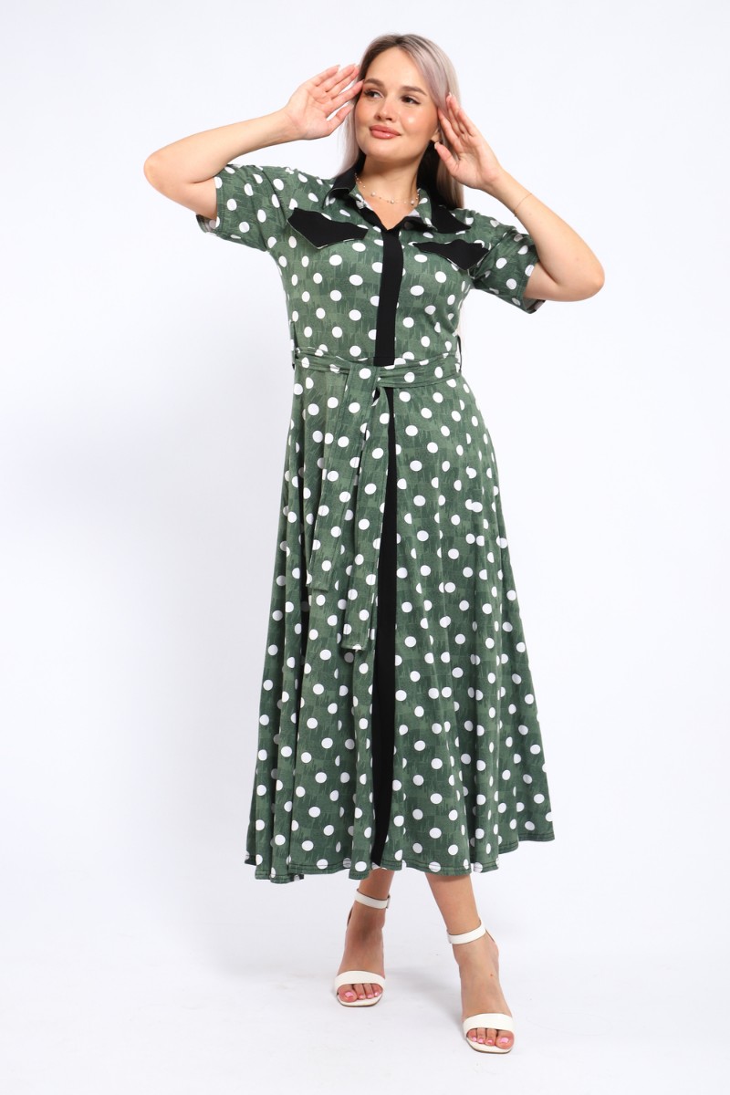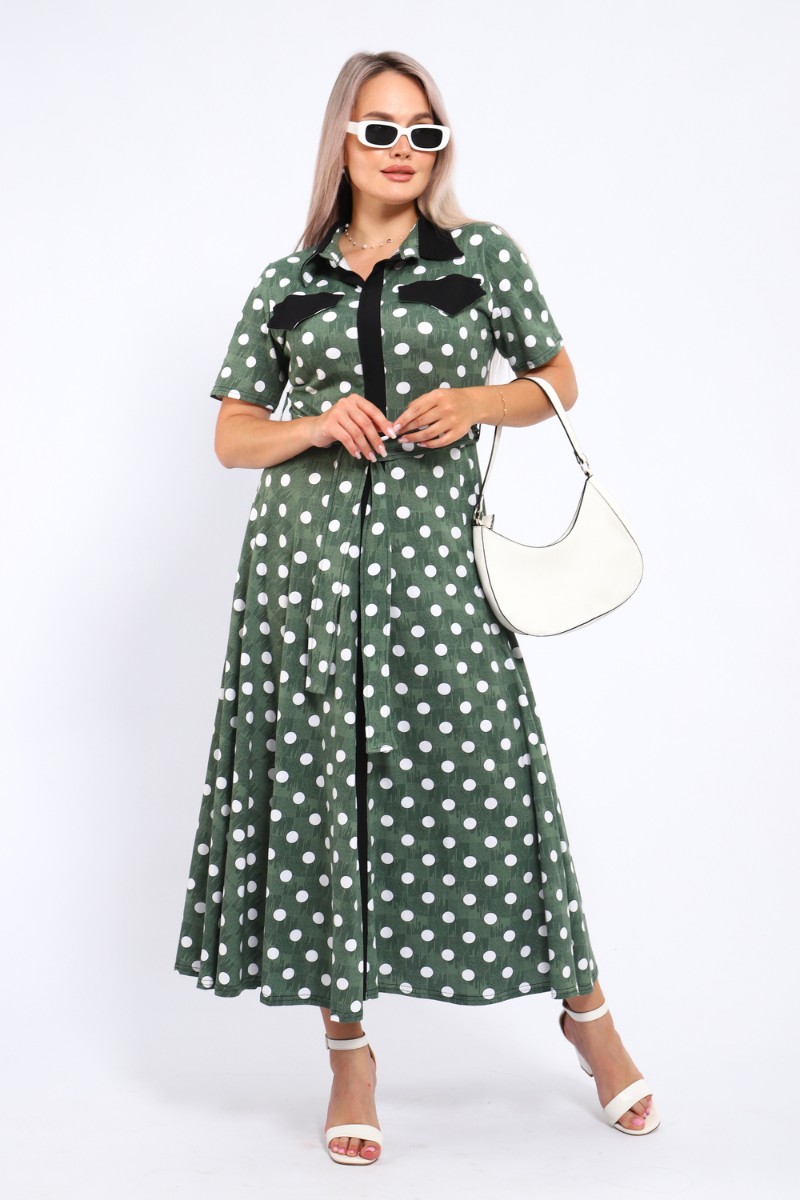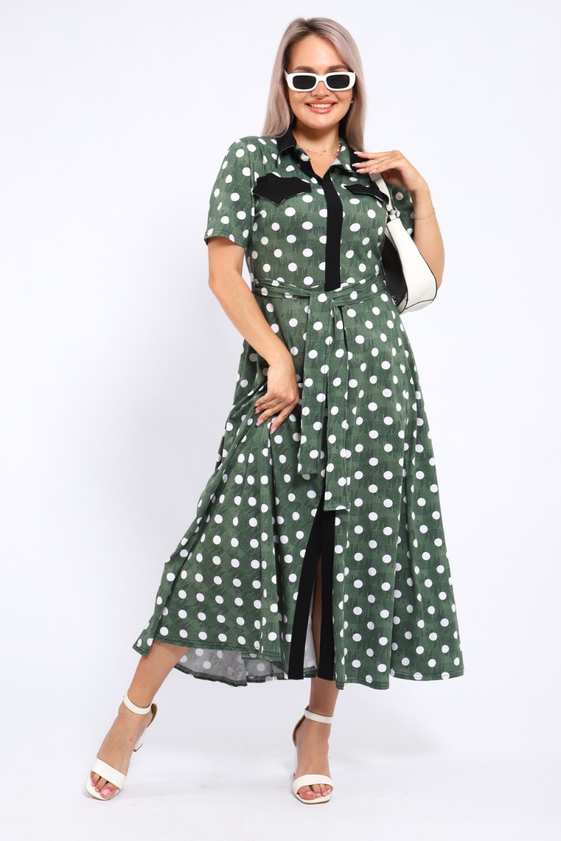 Представляем Вашему вниманию платье, которое сочетает в себе комфорт и уникальный дизайн. Модель выполнена из мягкого материала, что делает её идеальной для повседневной носки. Свободный крой с расклешённой юбкой и акцент на талии с помощью пояса создают воздушный и женственный силуэт. Контрастное сочетание жёлтого и чёрного в гороховом принте — смелое и при этом очень гармоничное решение. Это платье — отличный выбор для прогулок, встреч с друзьями или офиса. Носите его с босоножками на каблуке для создания изысканного образа или с кедами для более расслабленного стиля.