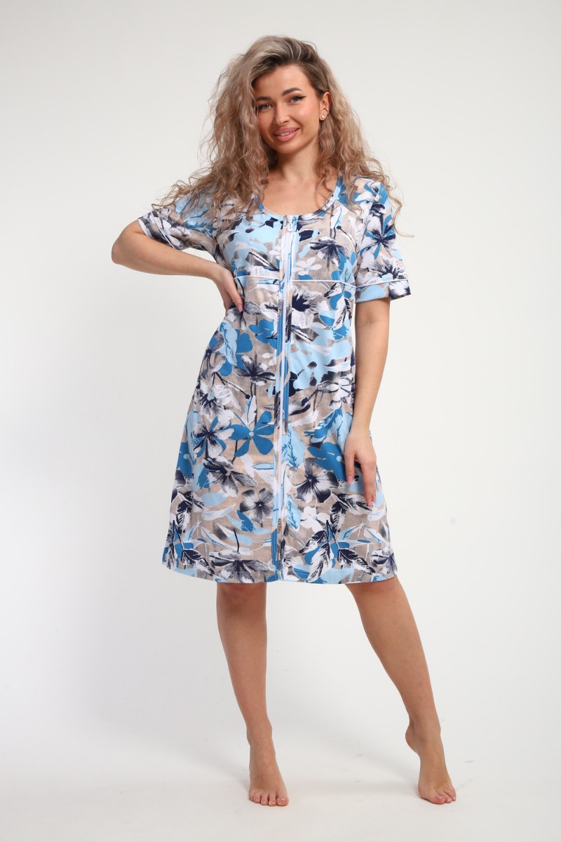 Халат женский ХЖ-01 кулирка (р-ры: 48-56) голубые цветы