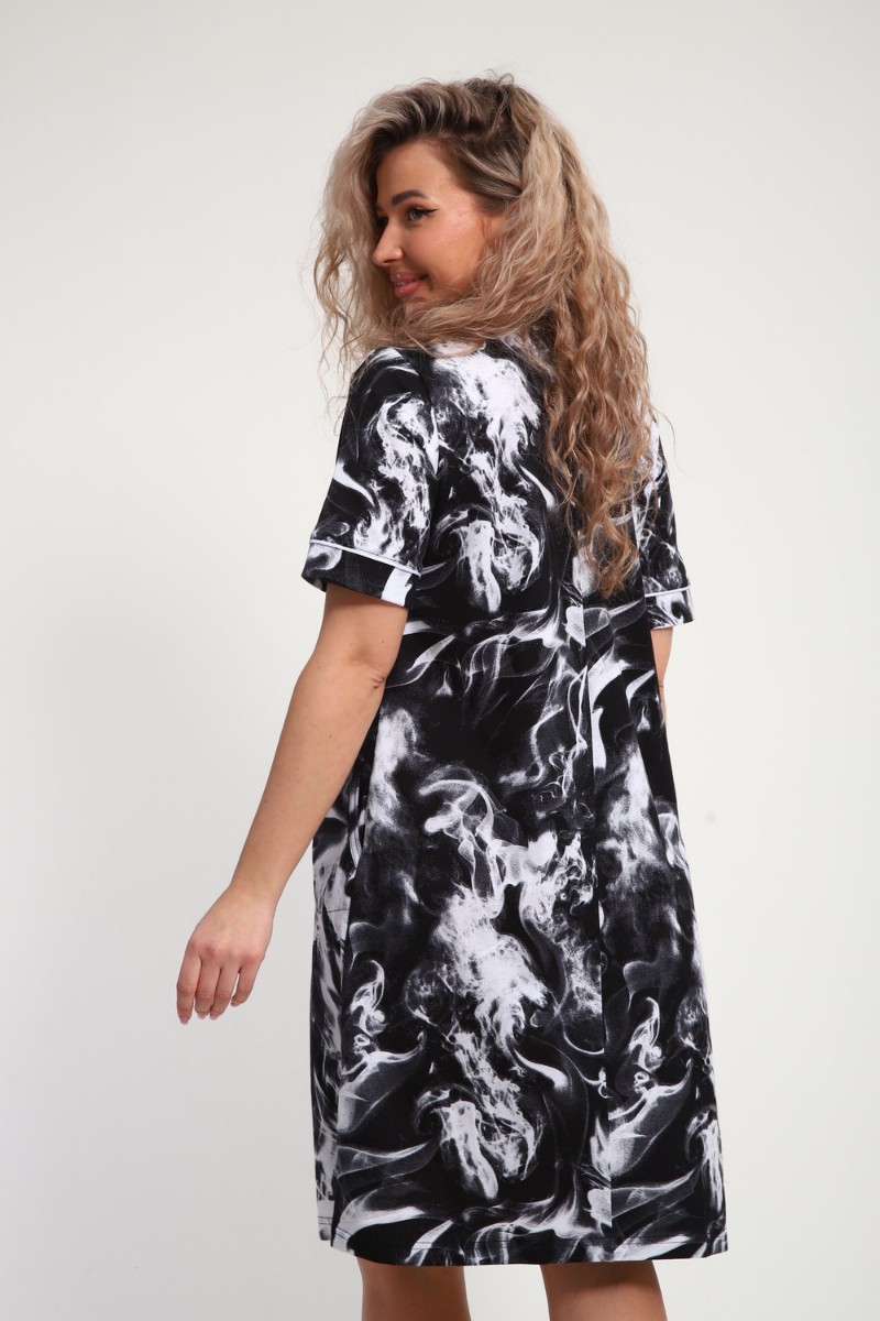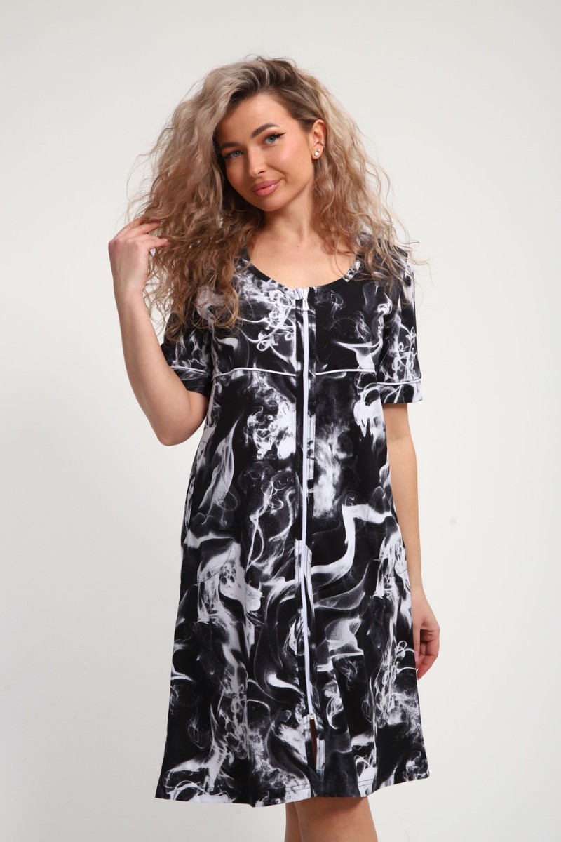 Халат женский ХЖ-01 кулирка (р-ры: 48-56) черный-белый дым