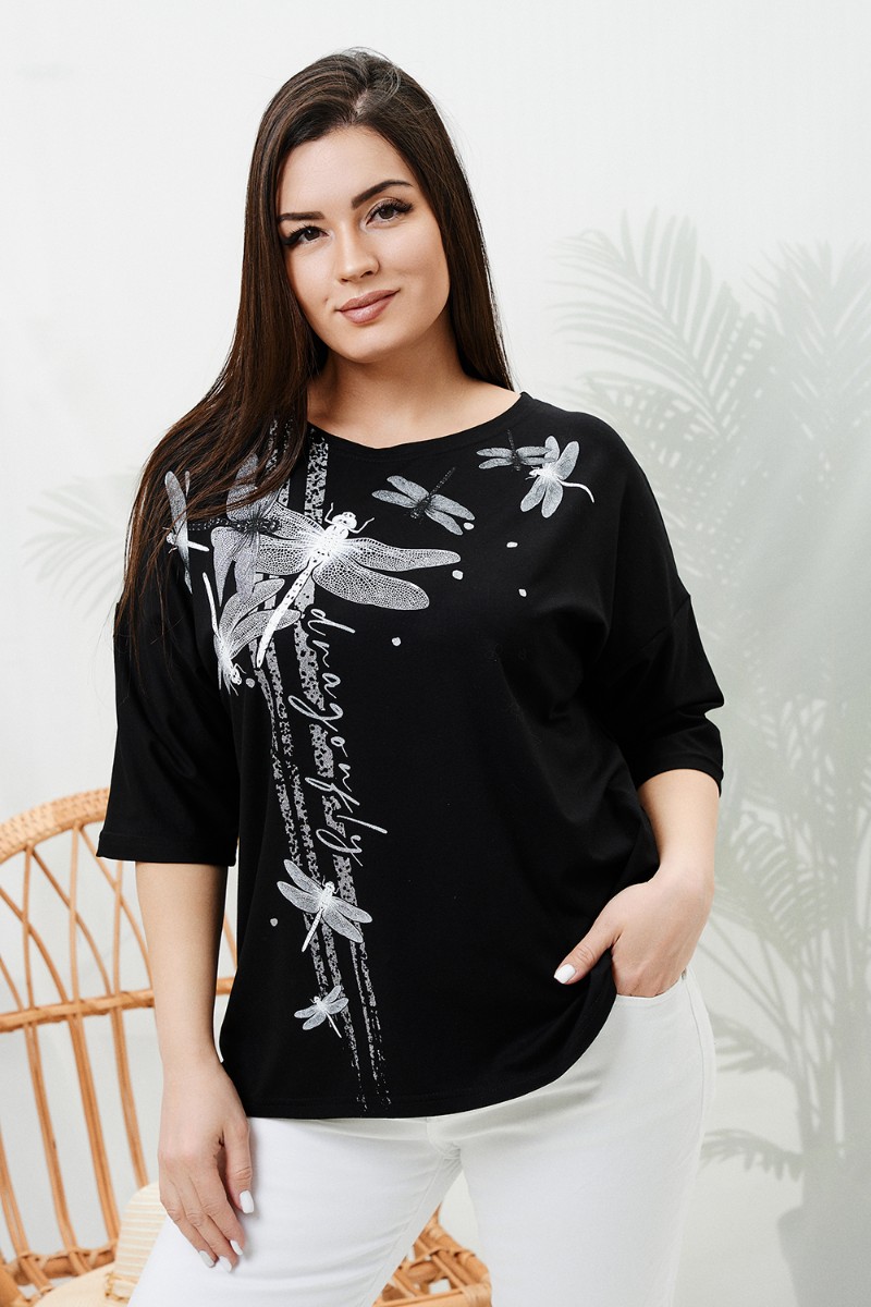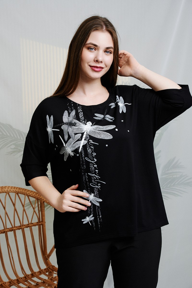 Туника женская №9185 вискоза пенье (р-ры: 48-64) черный