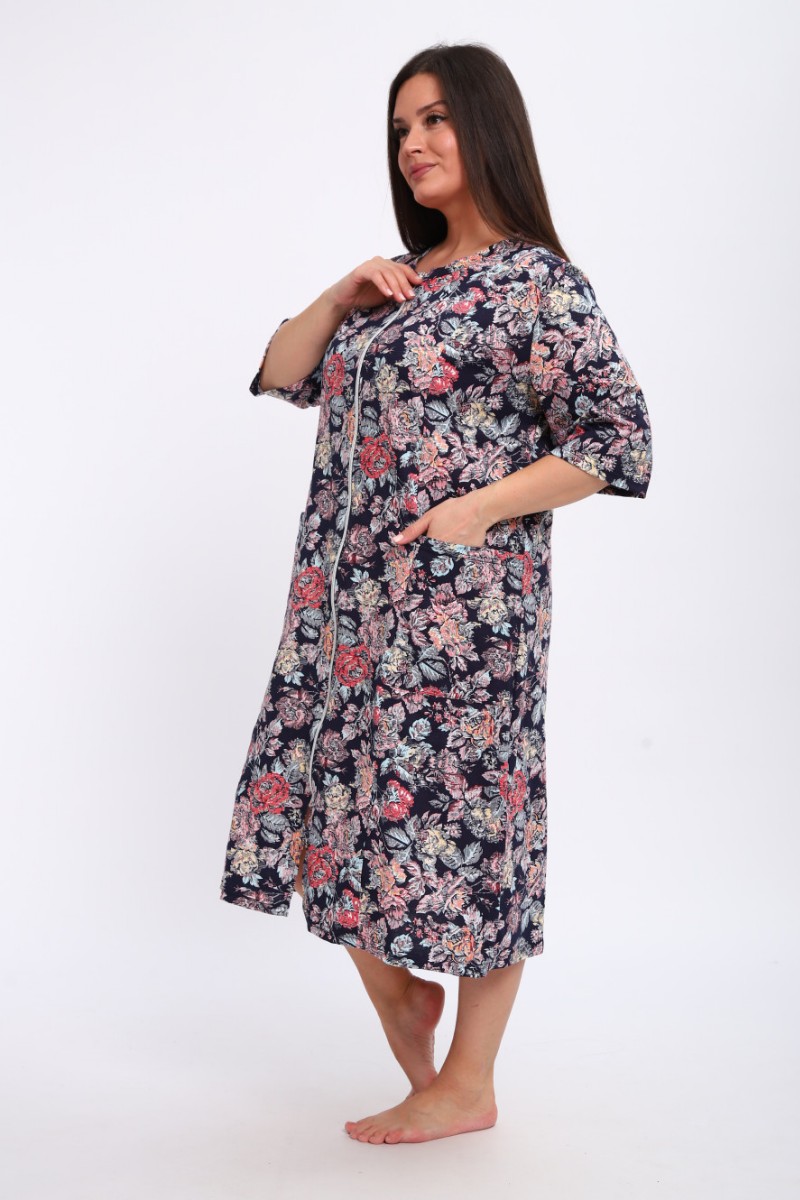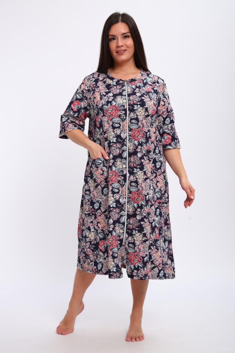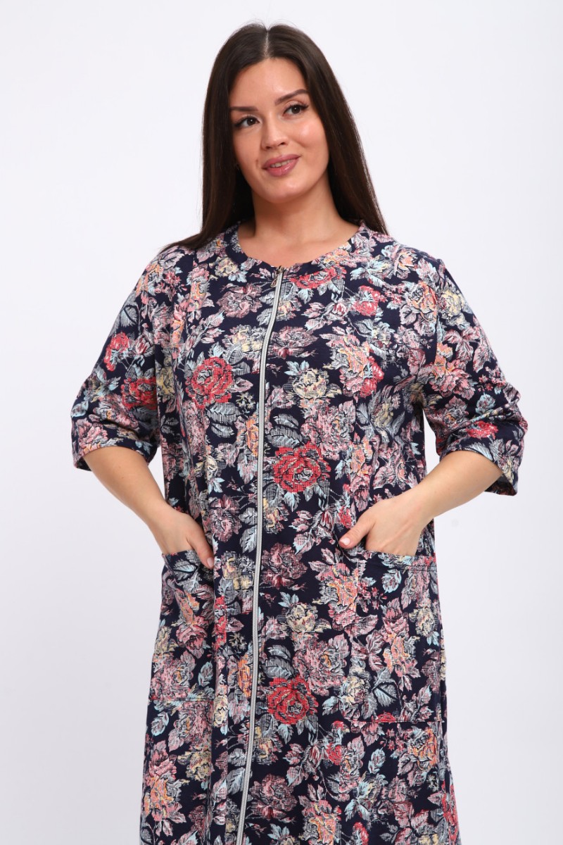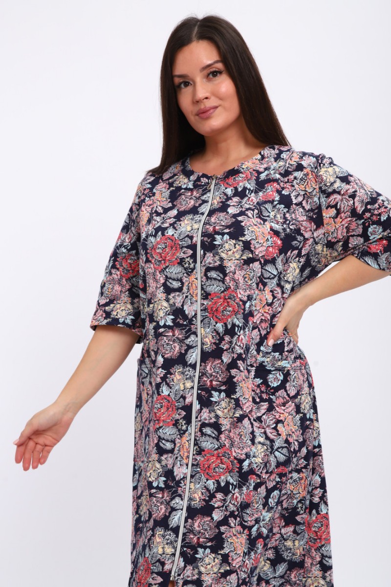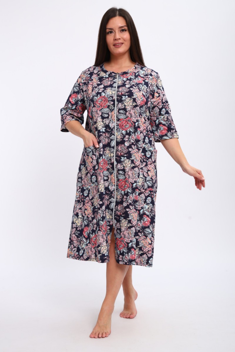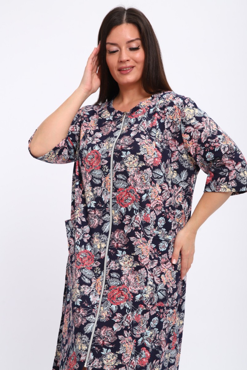 Халат женский Х-00372 кулирка (р-ры: 48-70) темно-синий-красный