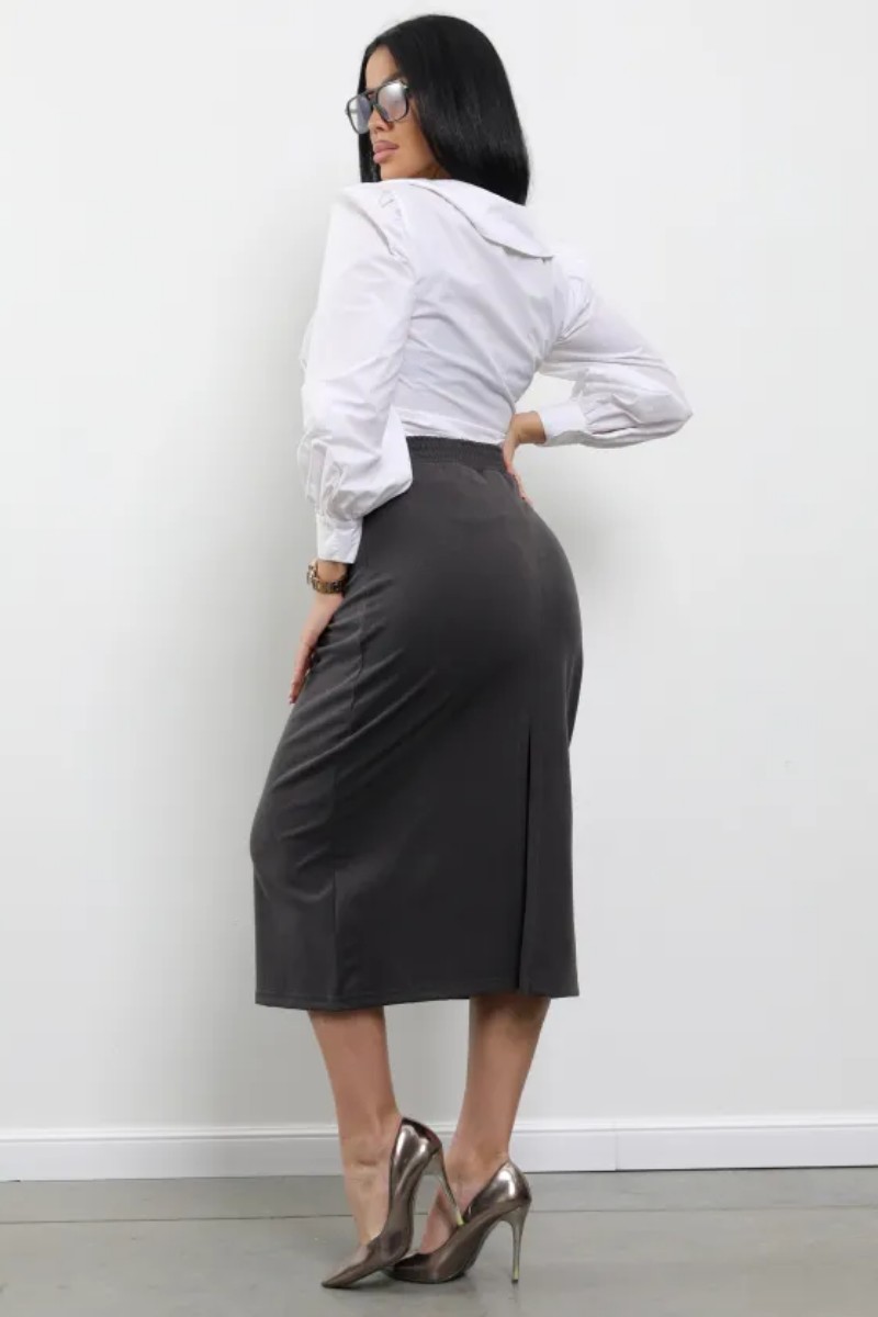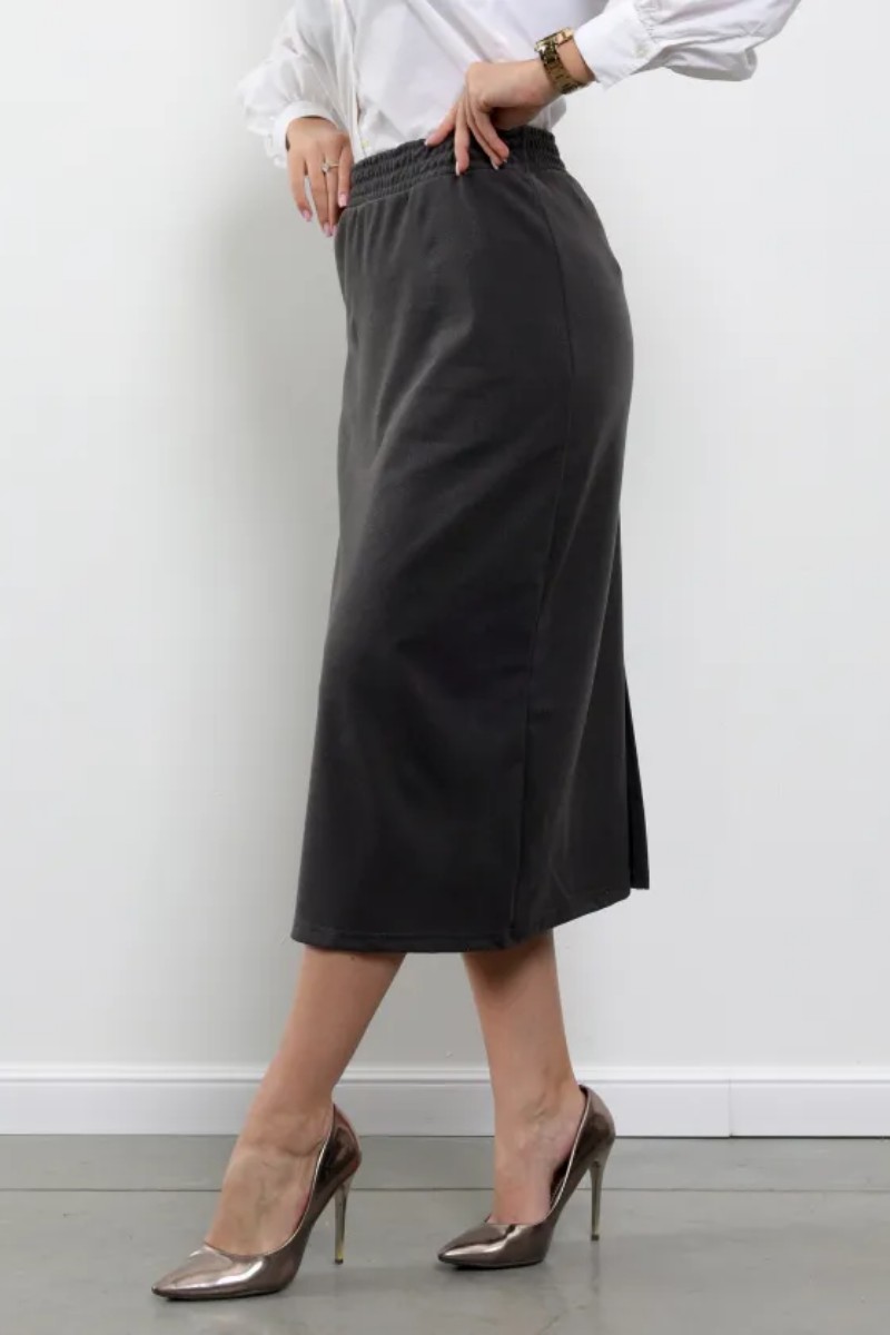 Представляем Вашему вниманию женскую юбку миди - стильный и практичный выбор для повседневной жизни. Юбка выполнена из полиэстера, что обеспечивает комфорт и долговечность. Состав материала включает 95% полиэстера и 5% лайкры, что гарантирует мягкость и эластичность ткани. Модель представлена в графитовом цвете, который легко сочетается с различными цветами и принтами. Особенностью данной модели является прямой силуэт и длина миди, что делает ее удобной и стильной. Пояс на резинке обеспечивает удобную посадку на талии, а разрез добавляет изюминку в образ. Застежка отсутствует, что облегчает процесс одевания и снимания юбки.