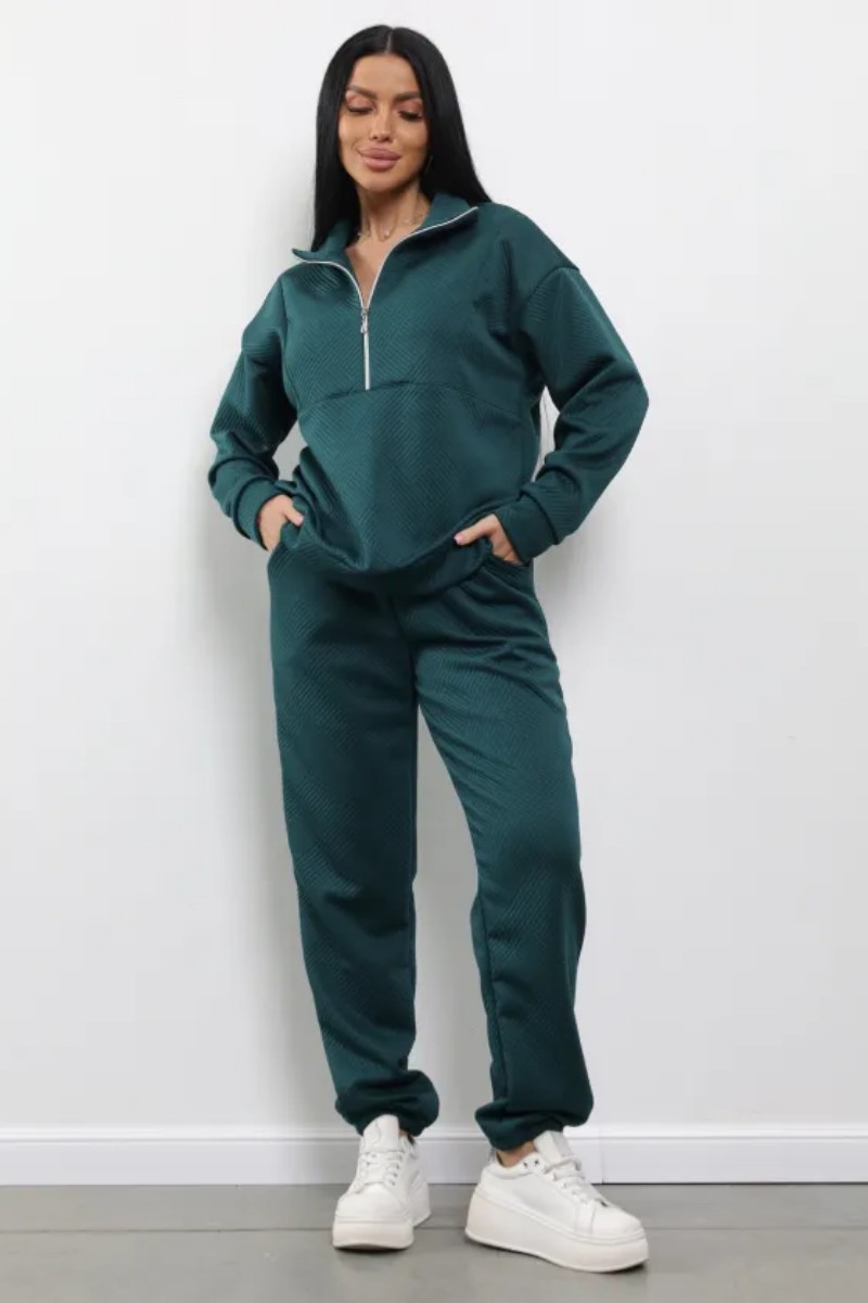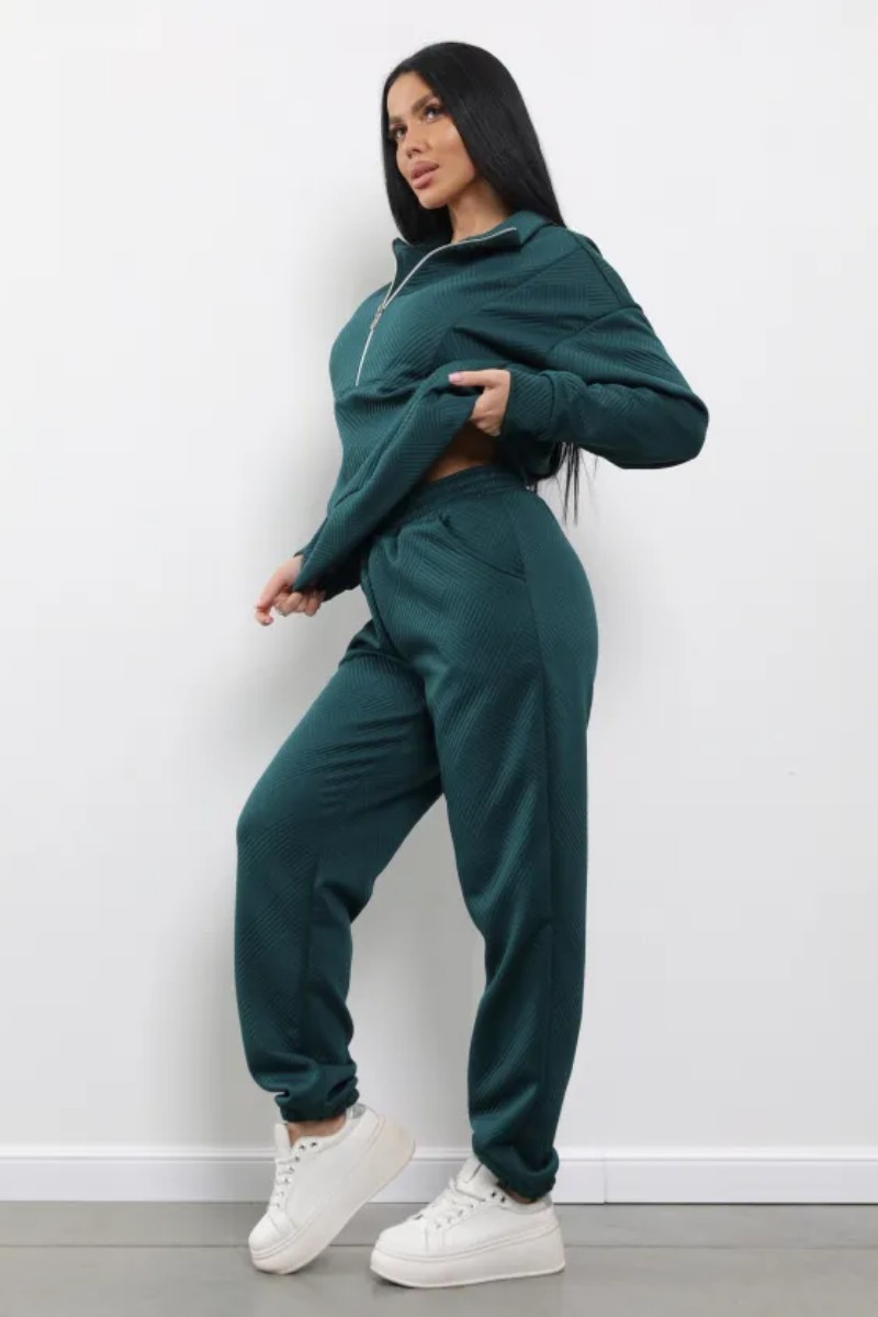 Представляем Вашему вниманию стильный спортивный костюм женский, создающий модный повседневный силуэт. Этот костюм спортивный женский — идеальная основа для современных городских образов. Вы получаете гармоничный комплект, где дизайн и функциональность существуют в балансе. Ключевые характеристики и преимущества: Качественный материал: 100% полиэстер обеспечивает легкость, сохраняет форму и не мнется, упрощая уход. Стильный верх: олимпийка с молнией и воротником-стойкой добавляет образу стиль и уникальность. Удобный низ: это удобный костюм женский с джоггерами. Брюки с фиксированной резинкой на поясе и по низу обеспечивают аккуратный силуэт. Два боковых кармана полезны в повседневной носке. Готовое стильное решение: этот спортивный костюм женский с брюками - базовый комплект в вашем гардеробе, который можно сочетать с многочисленными образами. Почему этот костюм женский спортивный стоит выбрать: