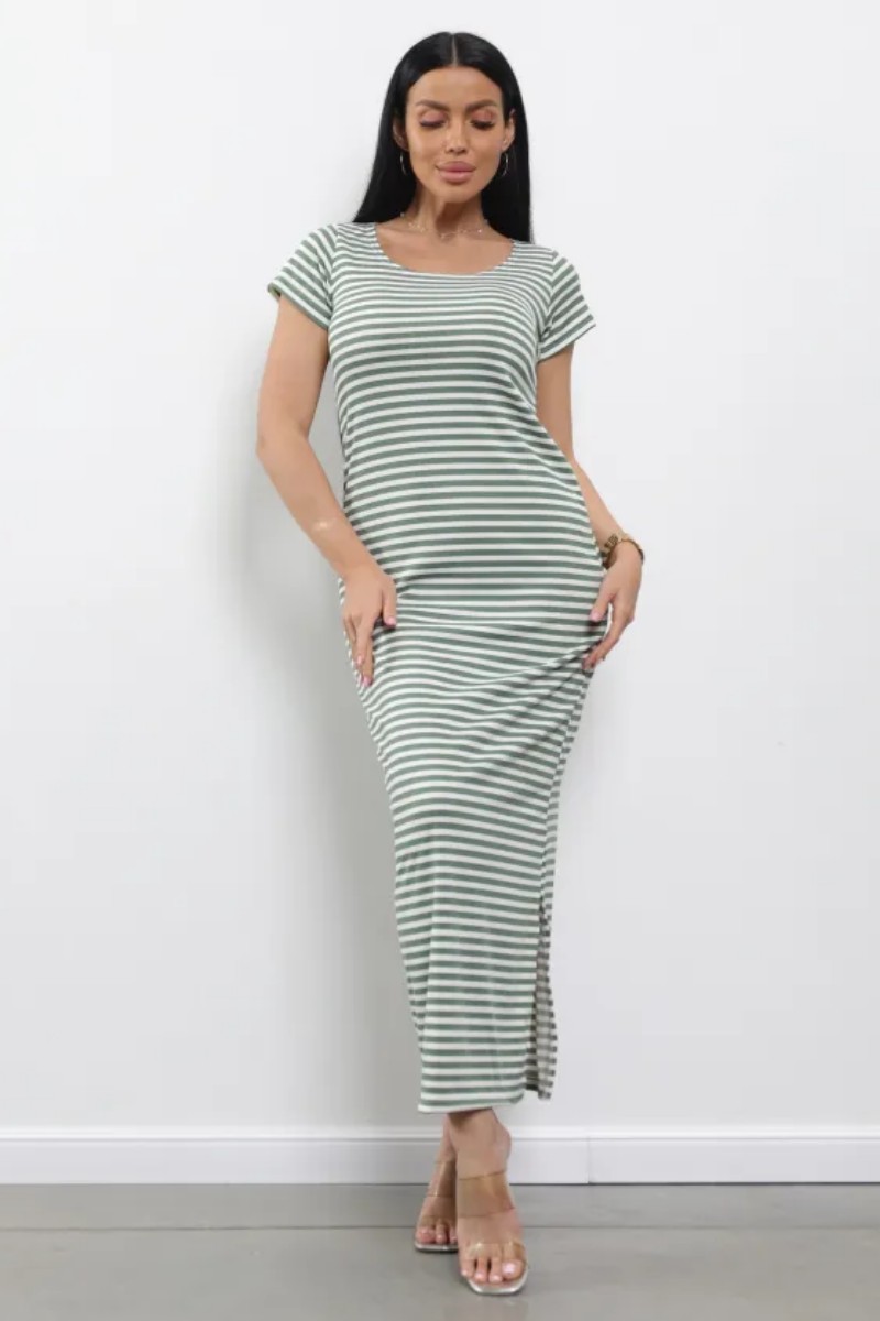 Платье женское "Симона 3" 1310-6 полиэстер с лайкрой (р-ры: 42-56) полоска зеленая