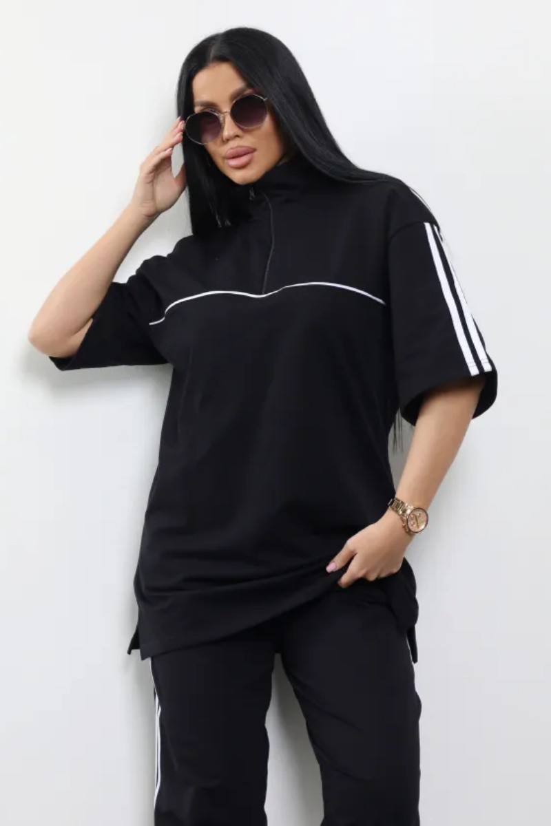 Представляем Вашему вниманию женскую футболку оверсайз с молнией. Эта футболка женская станет отличным дополнением вашего гардероба. Объемная модель с молнией и лампасами, разрезами по бокам и слегка спущенными широкими рукавами обеспечит комфорт и стильный современный образ. Футболка женская свободного кроя подходит для создания неповторимого образа. Футболка женская оверсайз из коллекции "Спорт" прекрасно сочетается с различными элементами одежды, создавая уникальные сочетания. Подходит как для дома, так и для прогулок по городу. Футболка женская больших размеров идеально подчеркивает фигуру и позволяет чувствовать себя уверенно в любой ситуации. Изделие выполнено футера 2-х нитки. Это идеальный выбор для тех, кто ценит комфорт и стиль одновременно. Выберите эту оверсайз модель для разнообразия вашего стиля и наслаждайтесь уникальными образами вашего гардероба!