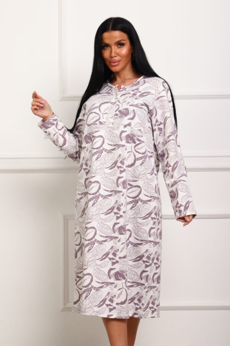 Сорочка женская "Нежность" футер (р-ры: 48-62) лиловый листья