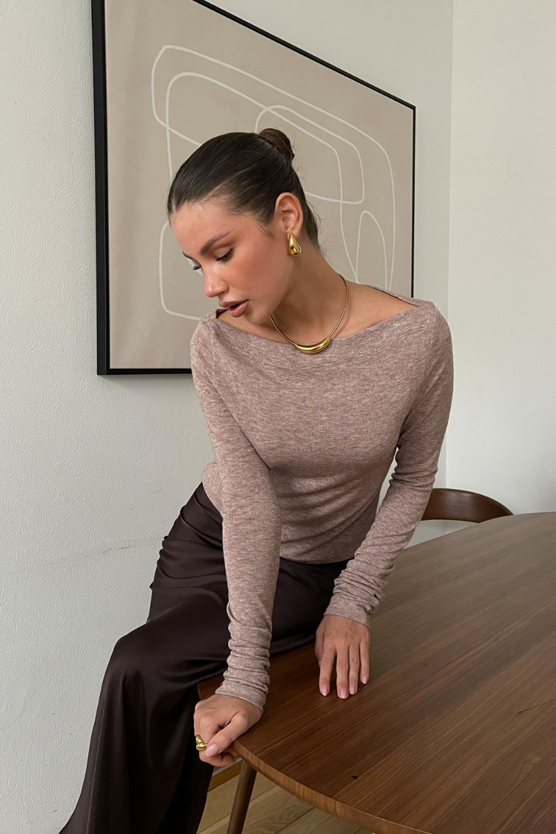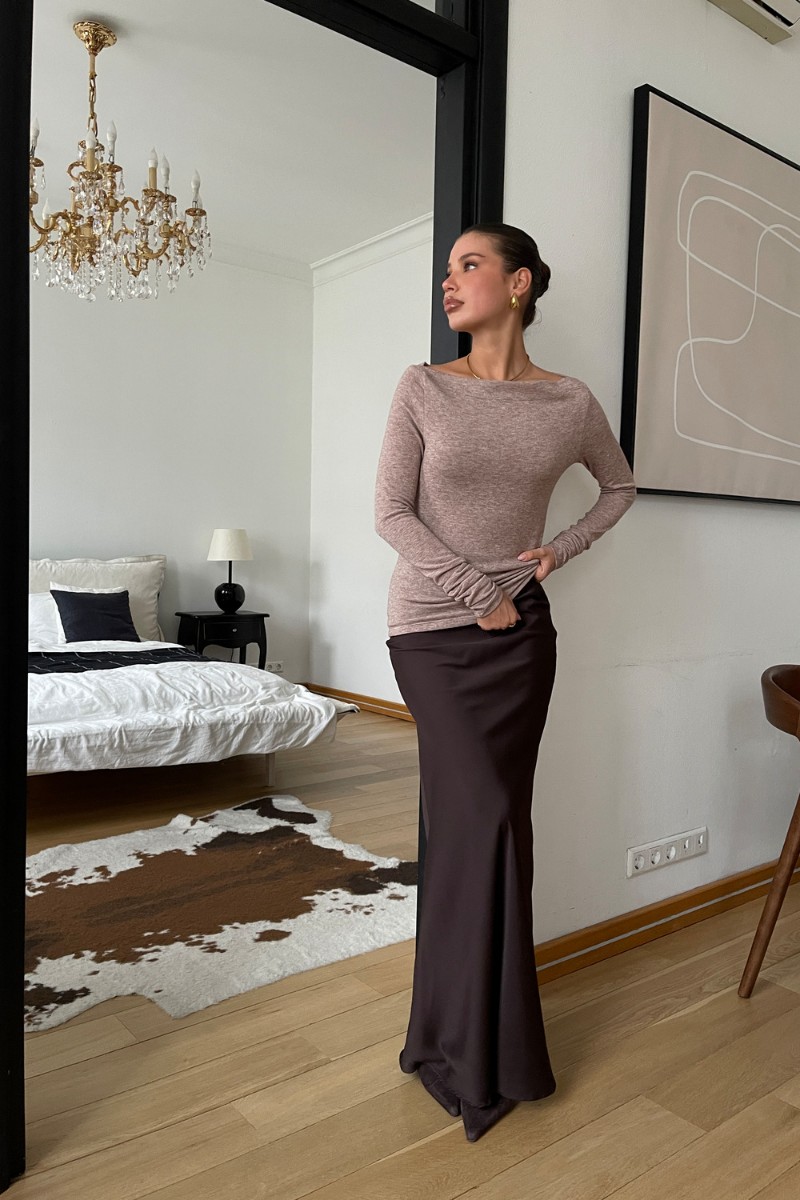 Лонгслив женский №058265 вязаный трикотаж-эко-кашемир (р-ры: 48-50) кофейный
