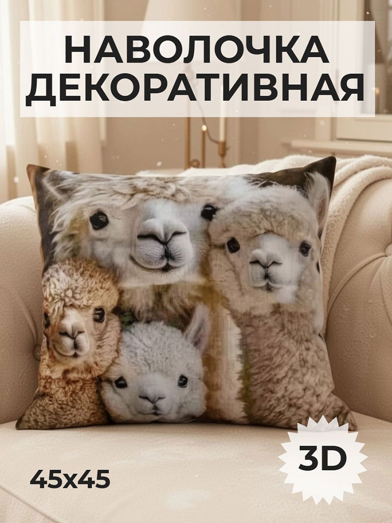 Наволочка-чехол декоративная велюр 3D на молнии "Альпака 4"