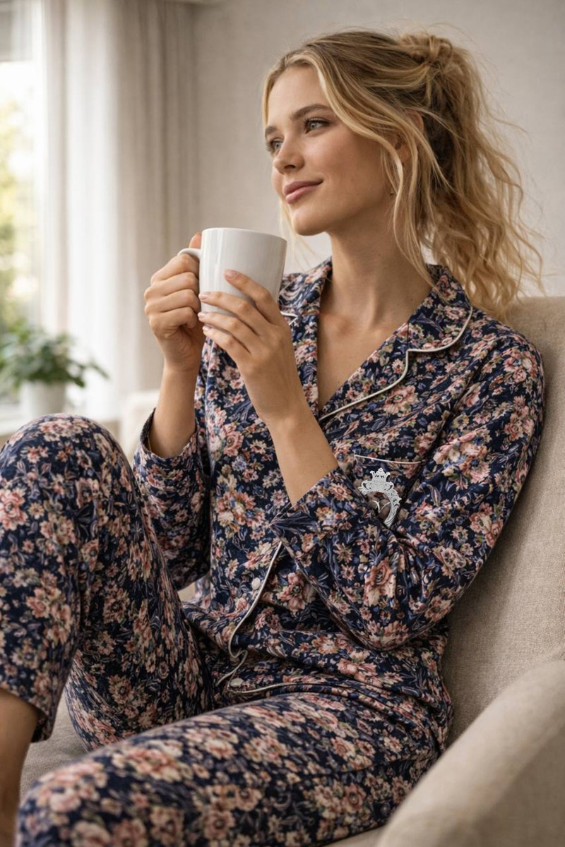 Представляем Вашему вниманию изящную женскую пижаму с брюками - стильное и удобное решение для домашней носки. Изготовленный из мягкого и приятного к телу интерлока , пижама прекрасно подойдет для уютных вечеров дома, сладкого сна или ленивых выходных с книгой и чаем. Брюки и рубашка создают удобный и стильный комплект для идеального отдыха дома. Модель выполнена из прямого покроя и накладные карманы обеспечивают свободу движений и удобство, что добавляет образу современности и свободы движений. Благодаря дышащему и немнущемуся материалу, костюм обеспечивает комфорт в течение всего дня. Пижама - это не только комфорт, но и практичность: ее можно стирать при 30 градусах, что упрощает уход за ней.