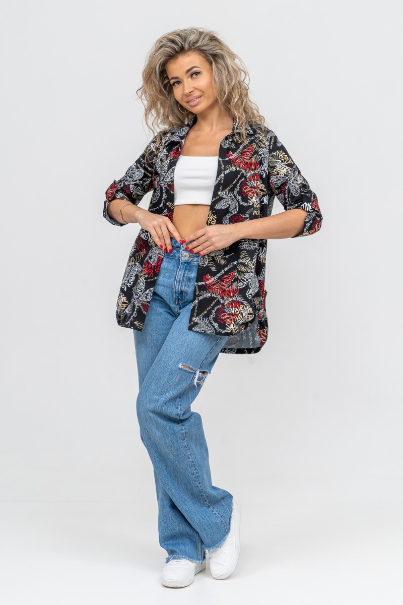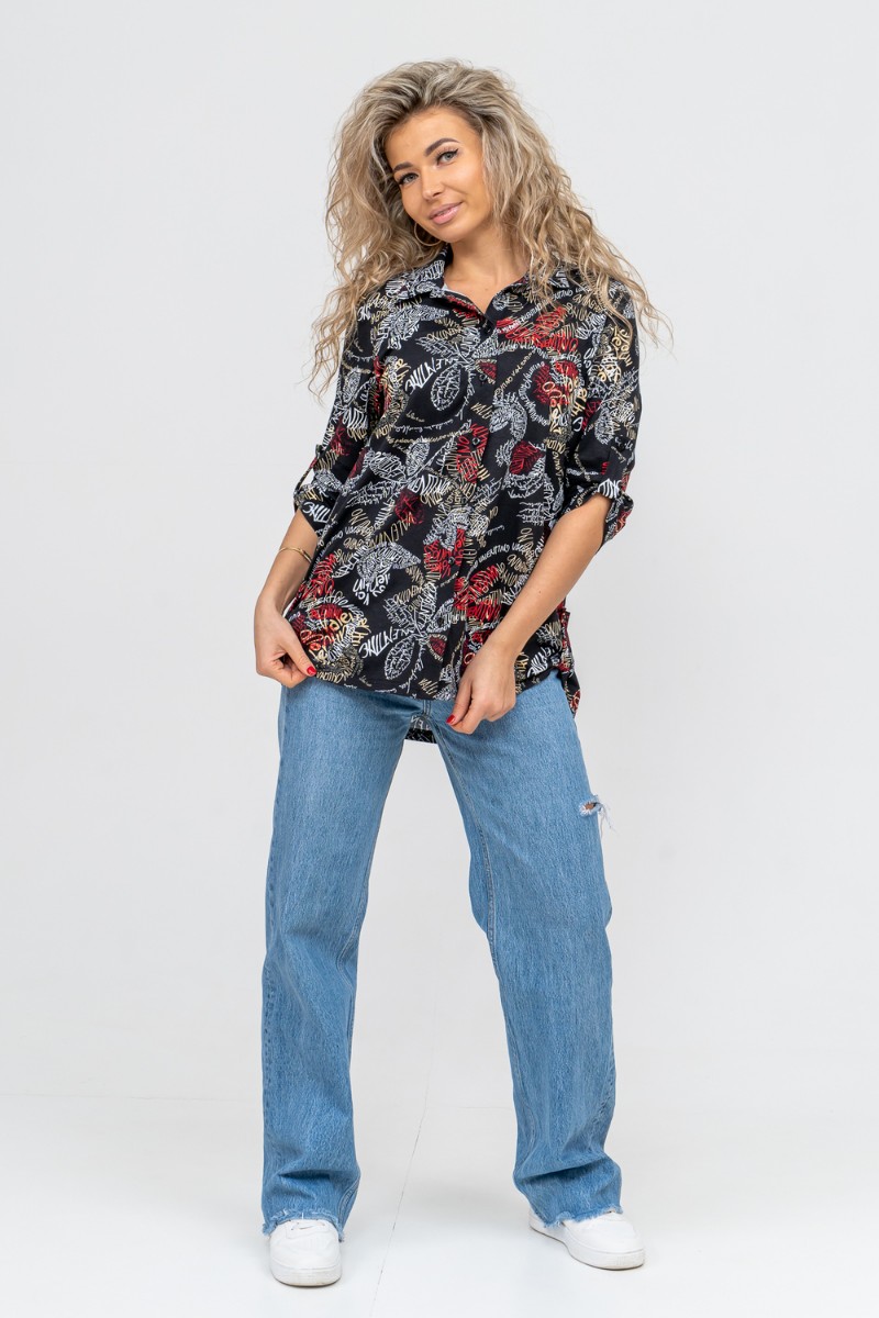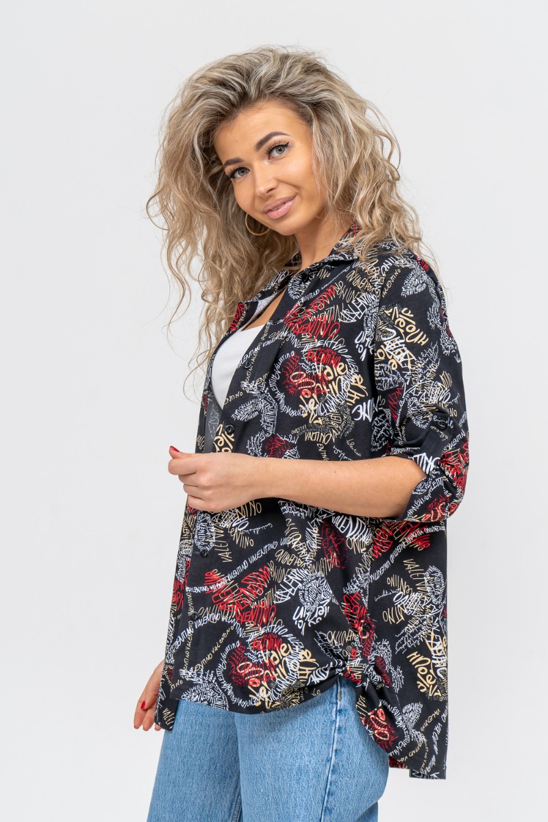 Туника-рубашка женская №36705 кулирка (р-ры: 46-60) надписи