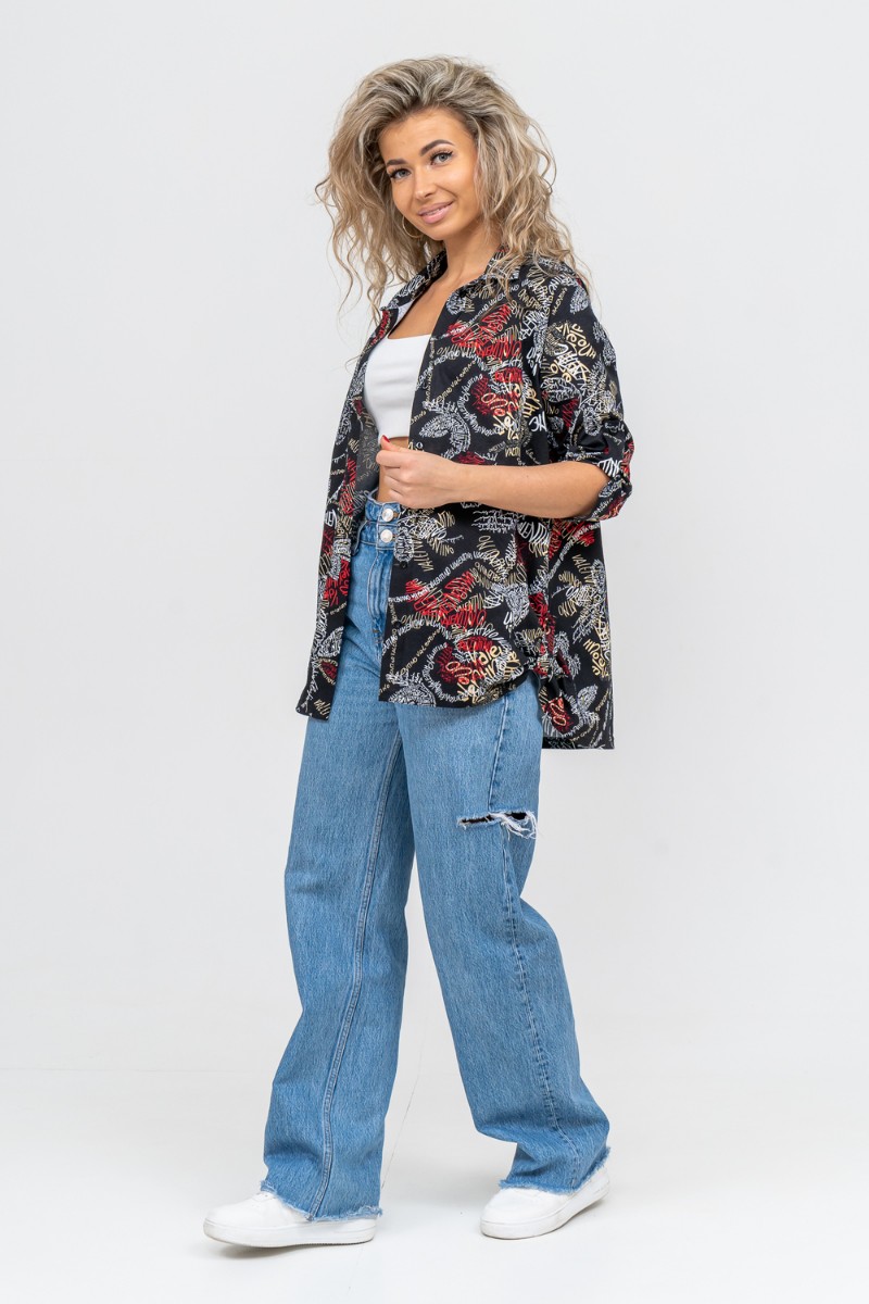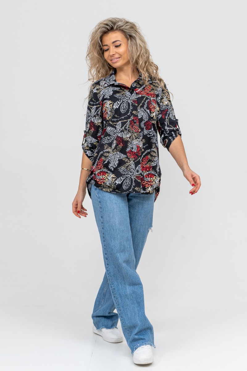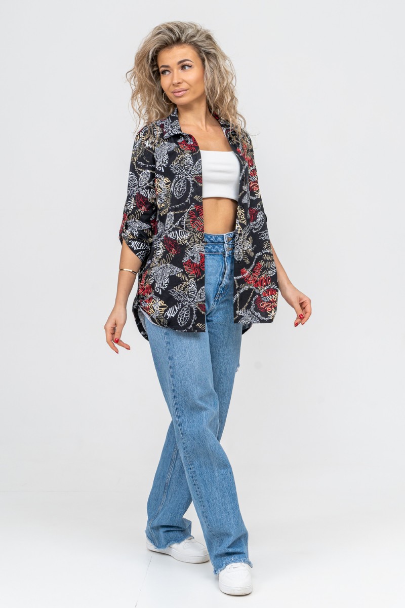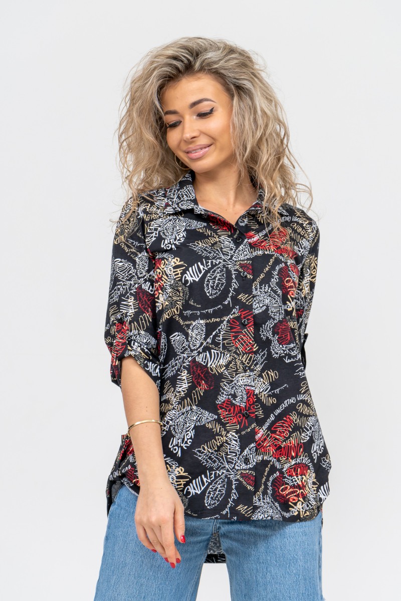 Туника-рубашка женская №36705 кулирка (р-ры: 46-60) надписи