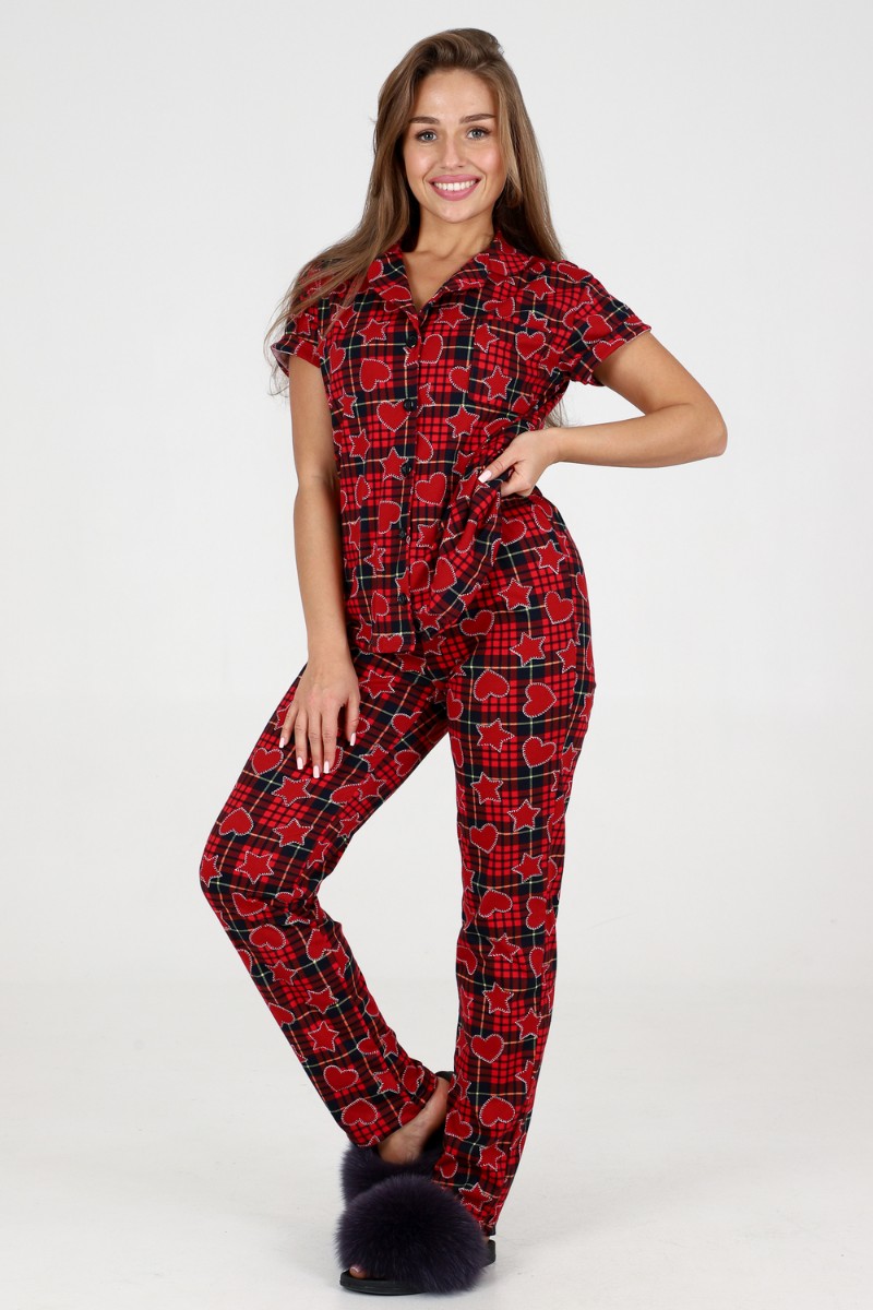 Пижама женская №35326 кулирка (р-ры: 44-54) красный