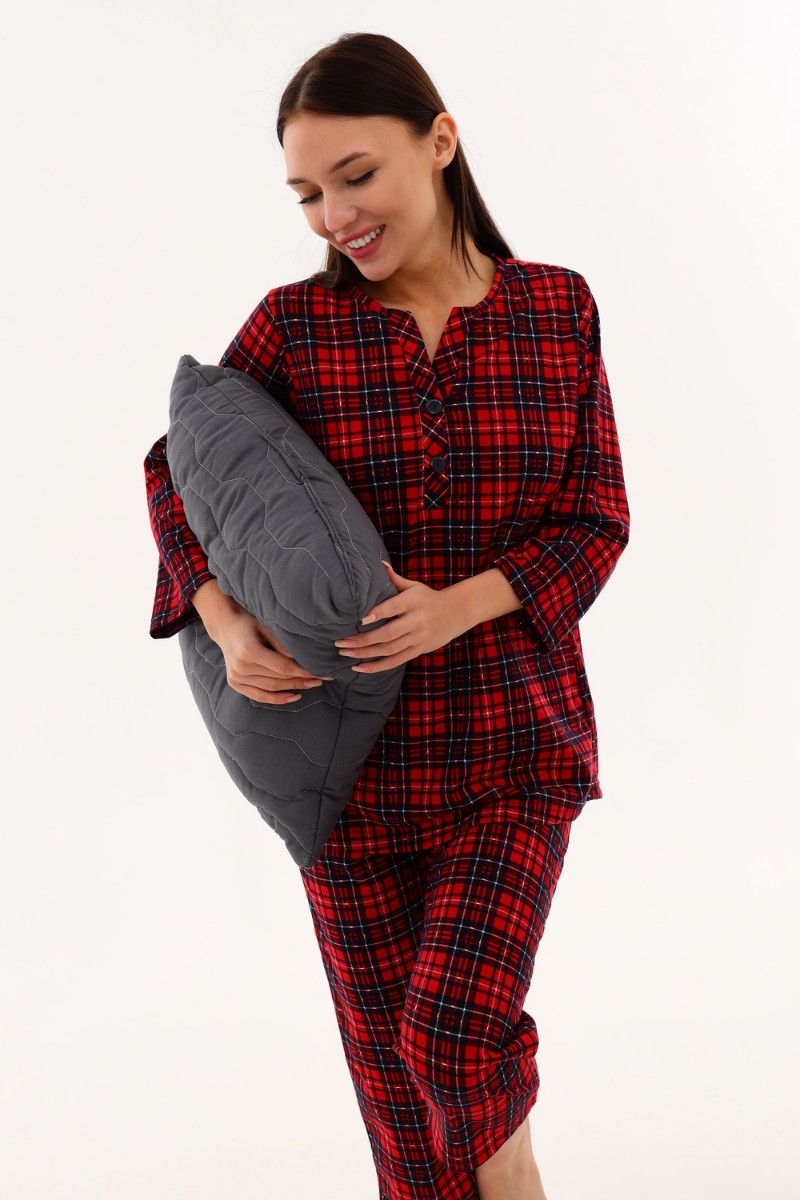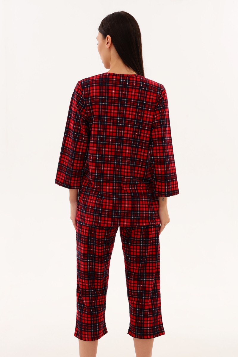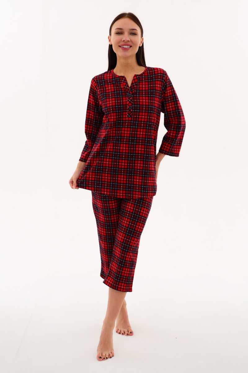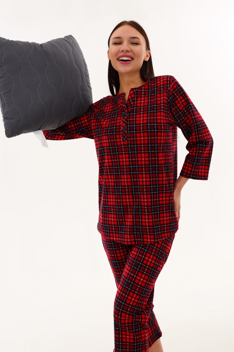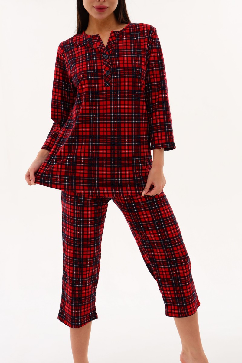 Пижама женская №21599 кулирка (р-ры: 46-60) клетка красная