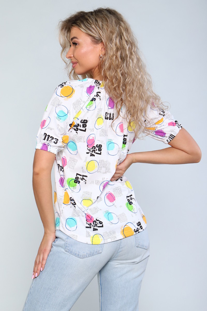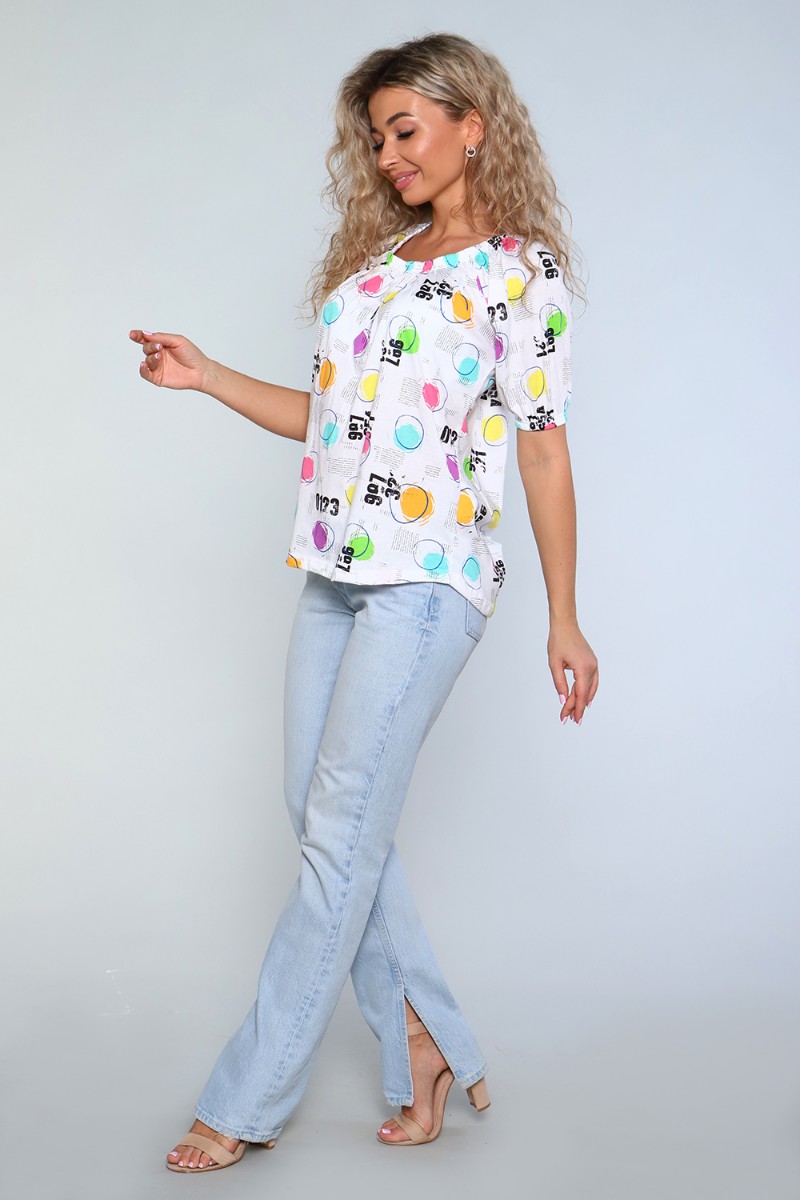 Представляем Вашему вниманию легкую женскую тунику полуприлегающего силуэта с короткими рукавами - реглан и полукруглым низом. Горловина и низ рукавов обработаны с эластичной тесьмой. Комфортна для повседневной носки.