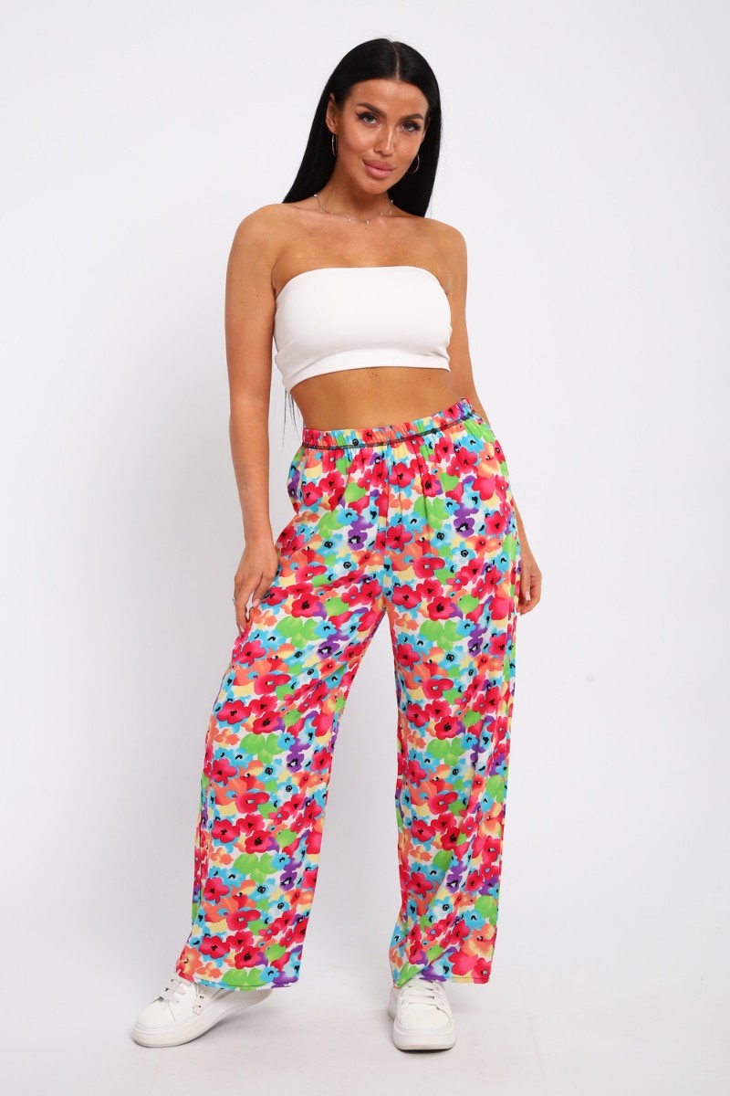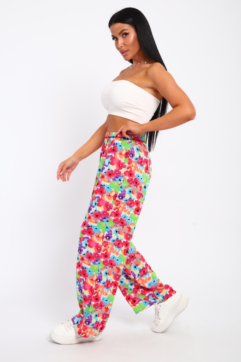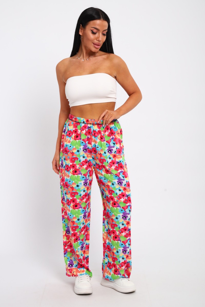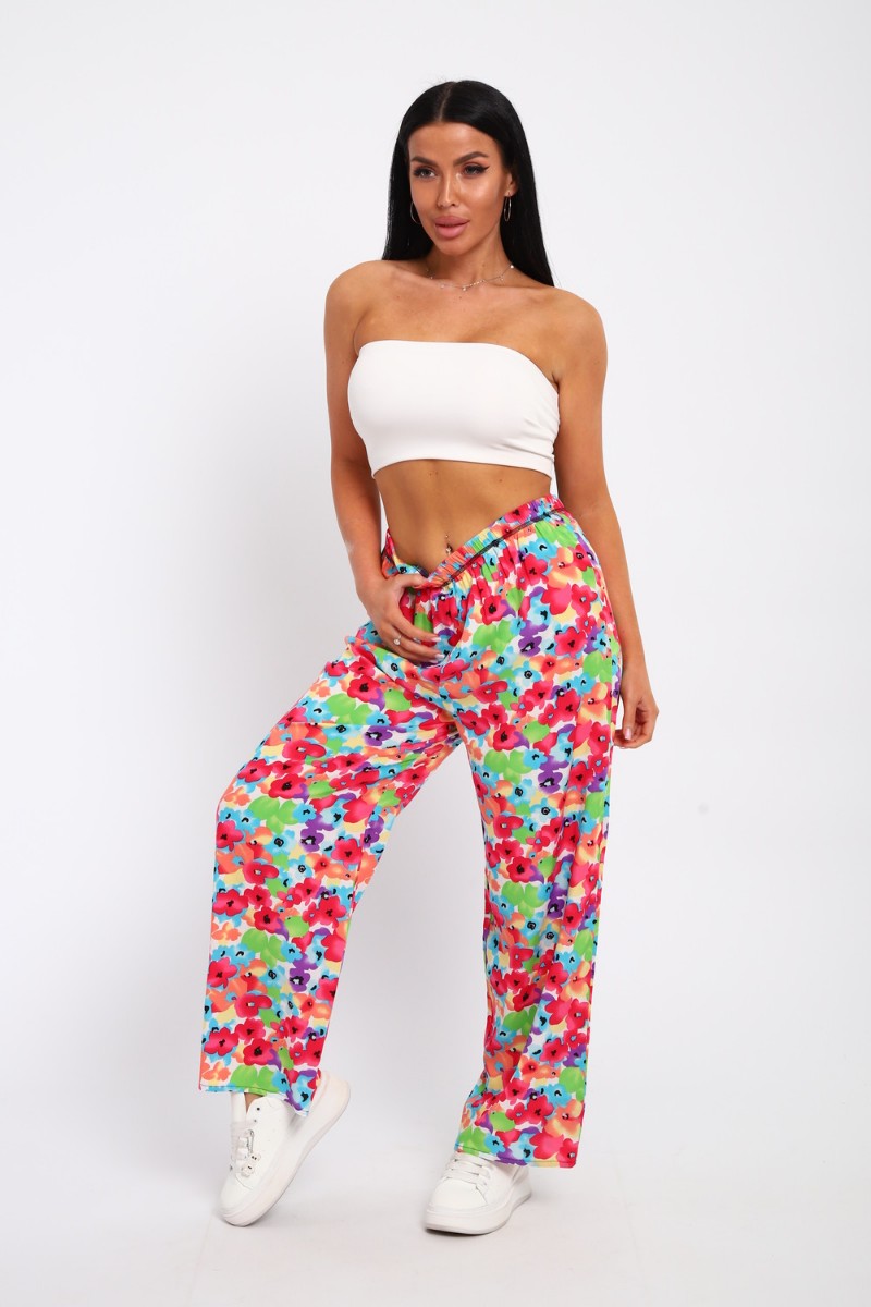 Брюки женские №74365 штапель (р-ры: 46-52) цветы на белом
