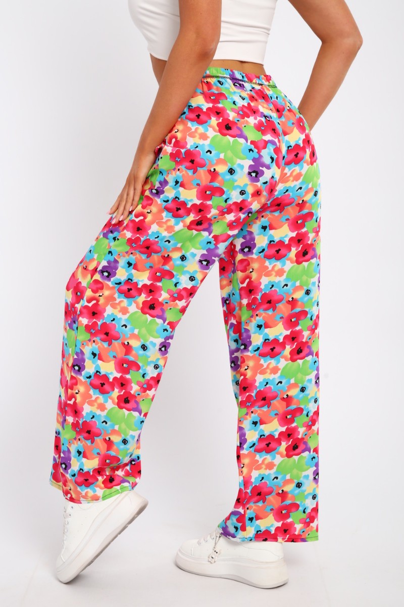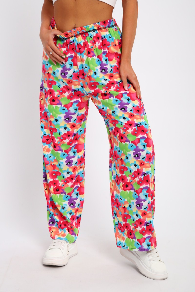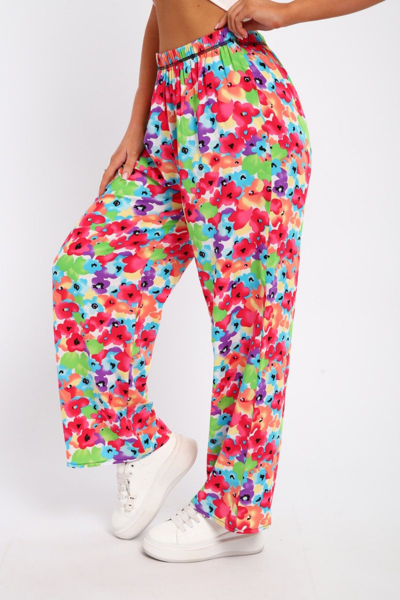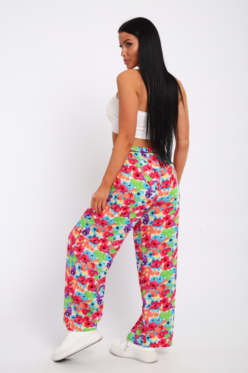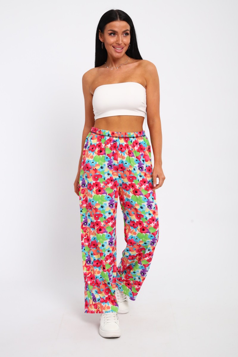 Брюки женские №74365 штапель (р-ры: 46-52) цветы на белом