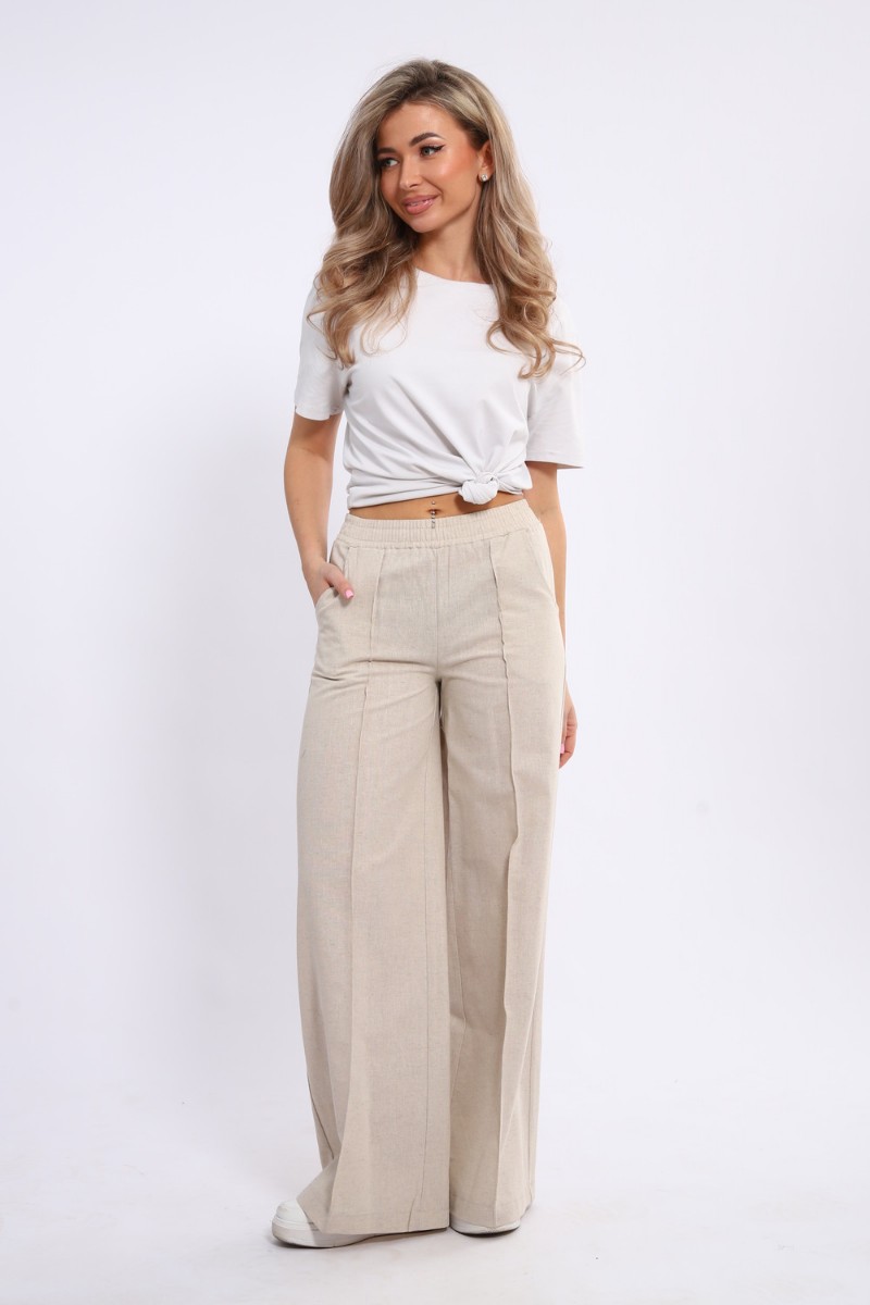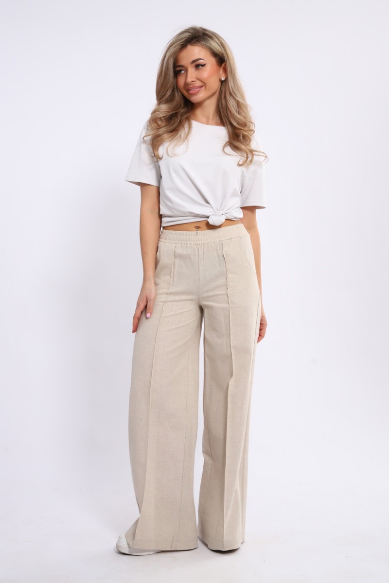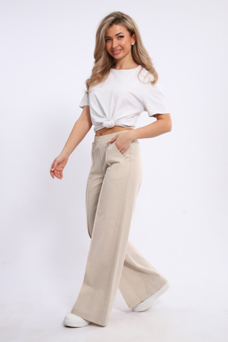 Брюки женские №20685 лён (р-ры: 44-54) светло-бежевый