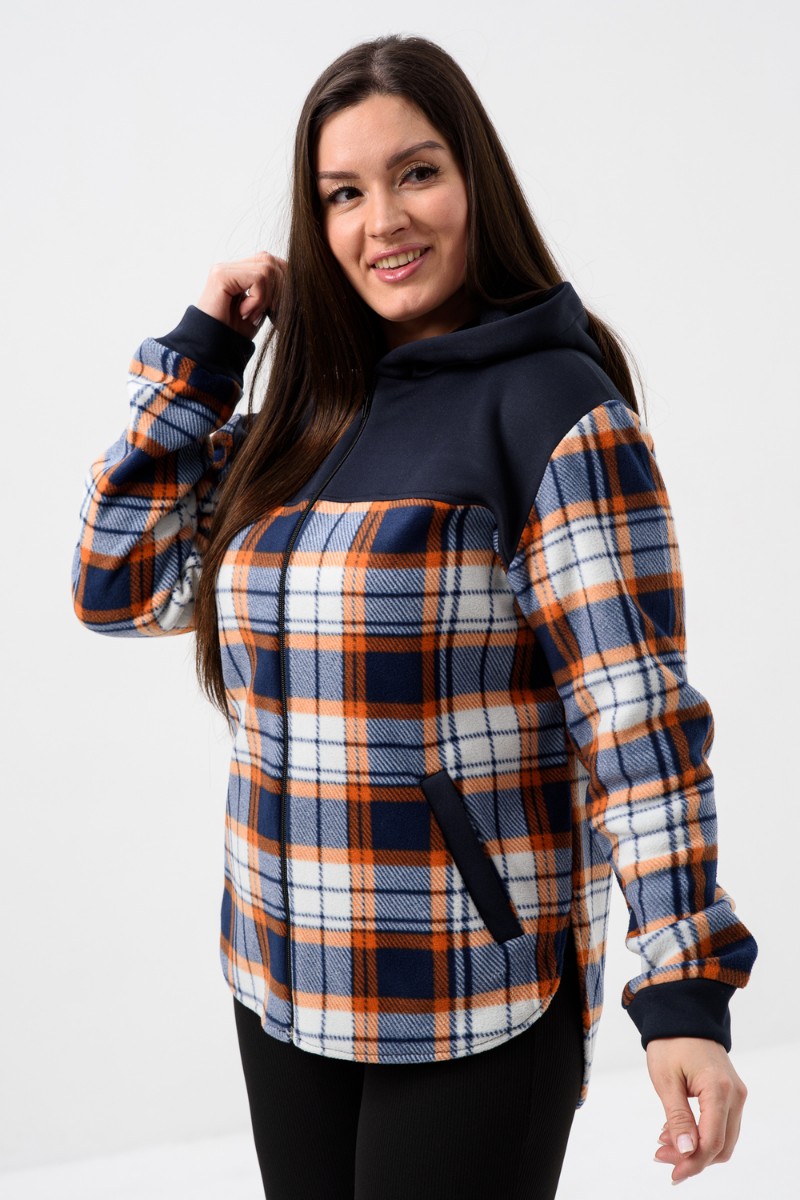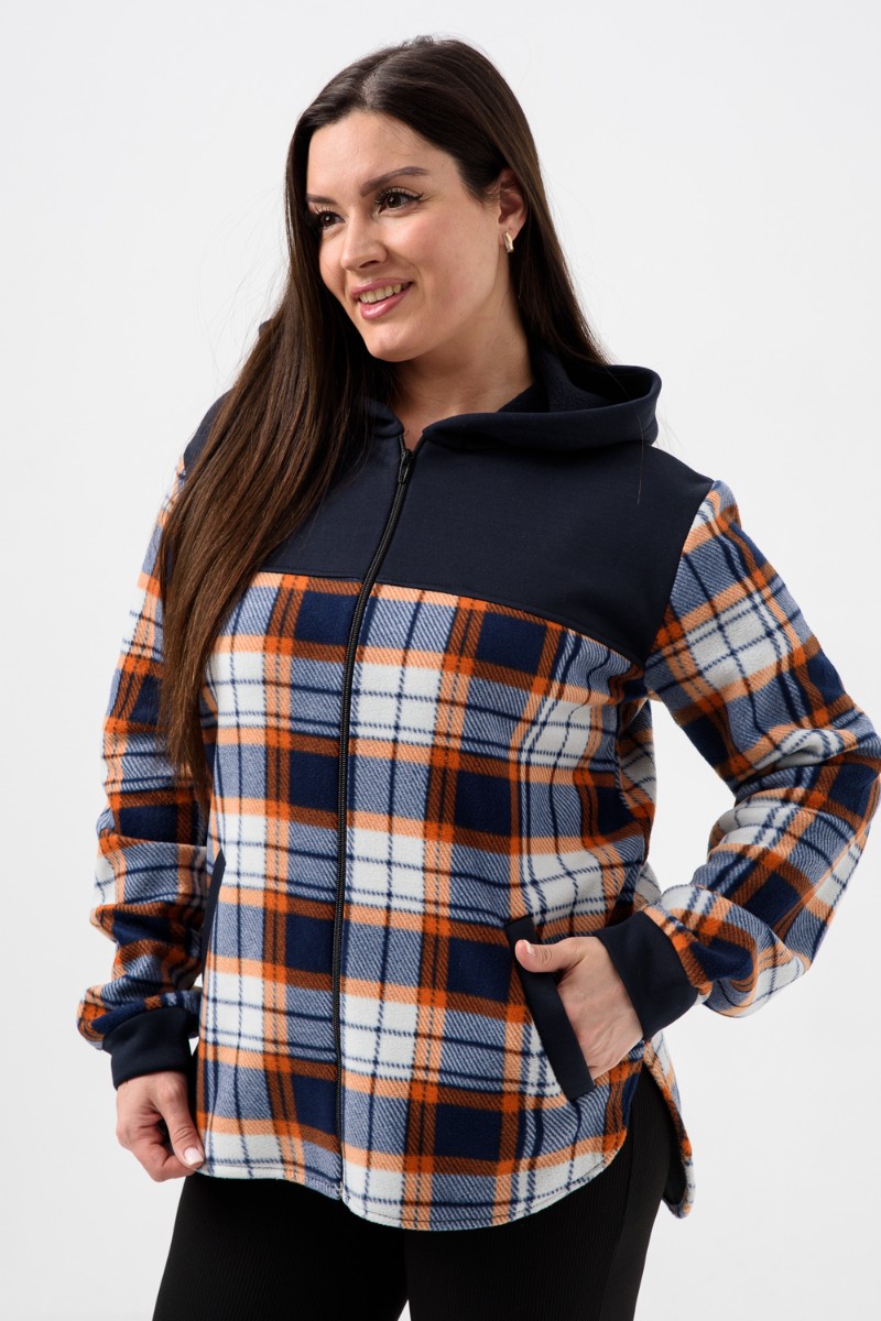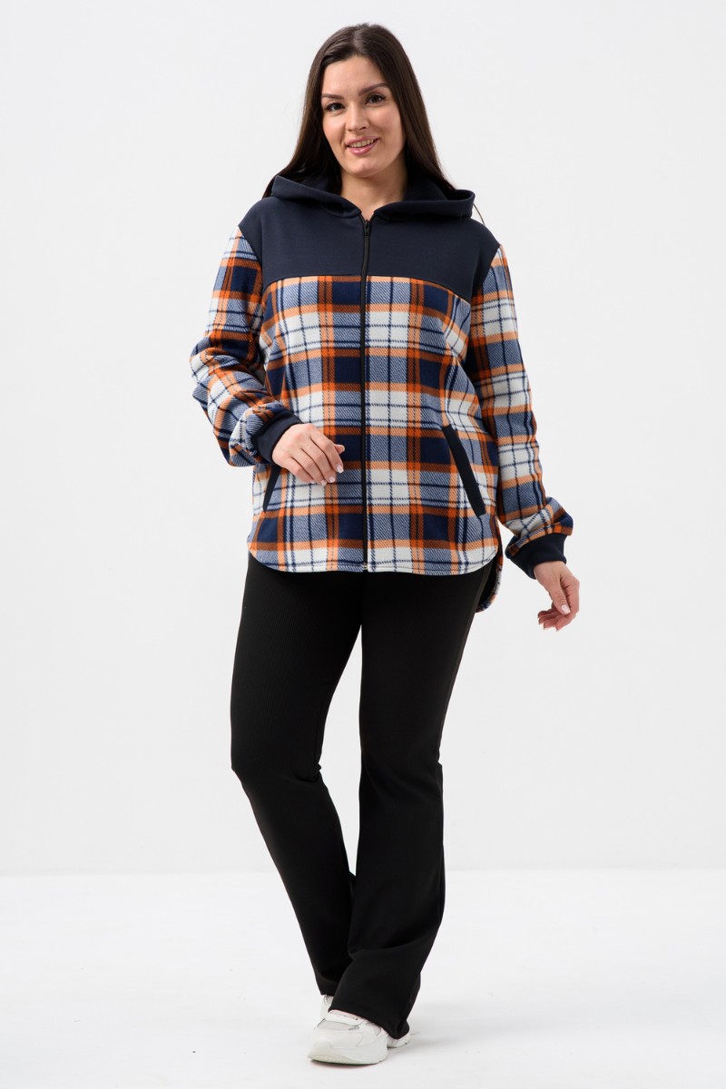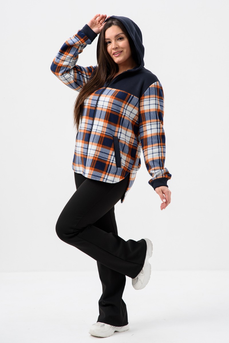 Толстовка женская №52452 флис-футер (р-ры: 44-58) темно-синий-клетка