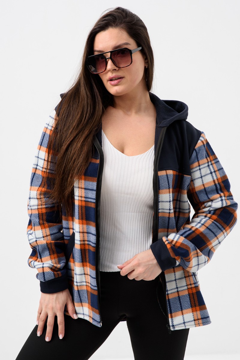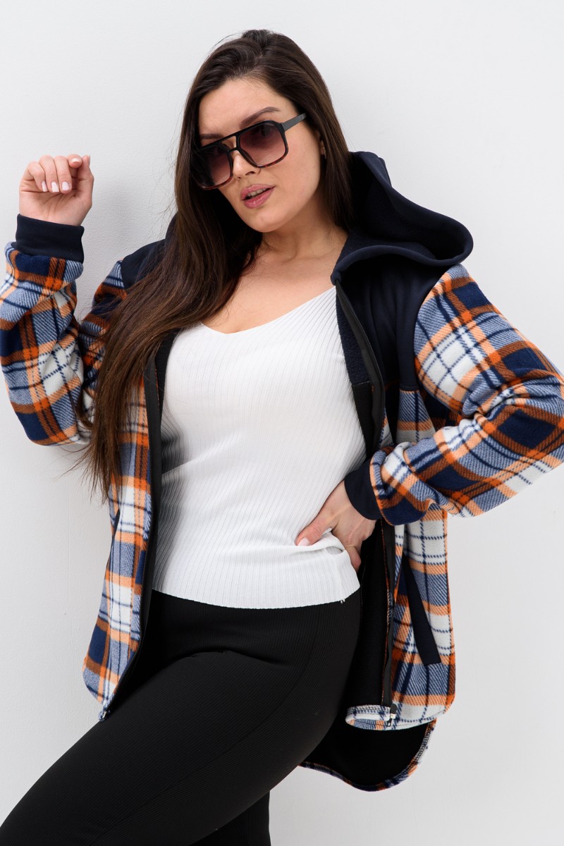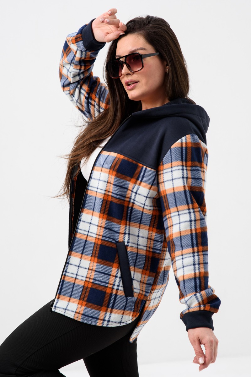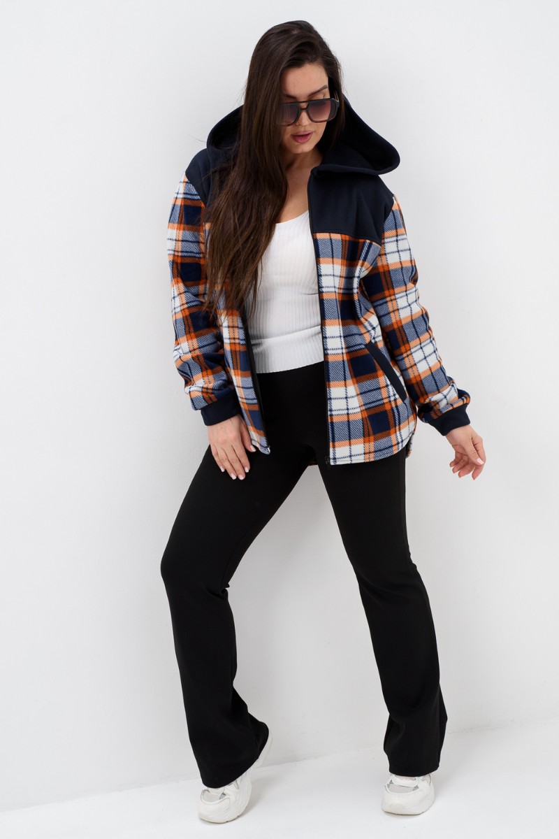 Толстовка женская №52452 флис-футер (р-ры: 44-58) темно-синий-клетка