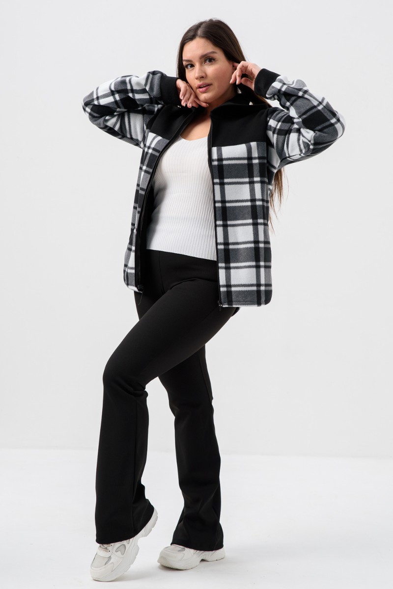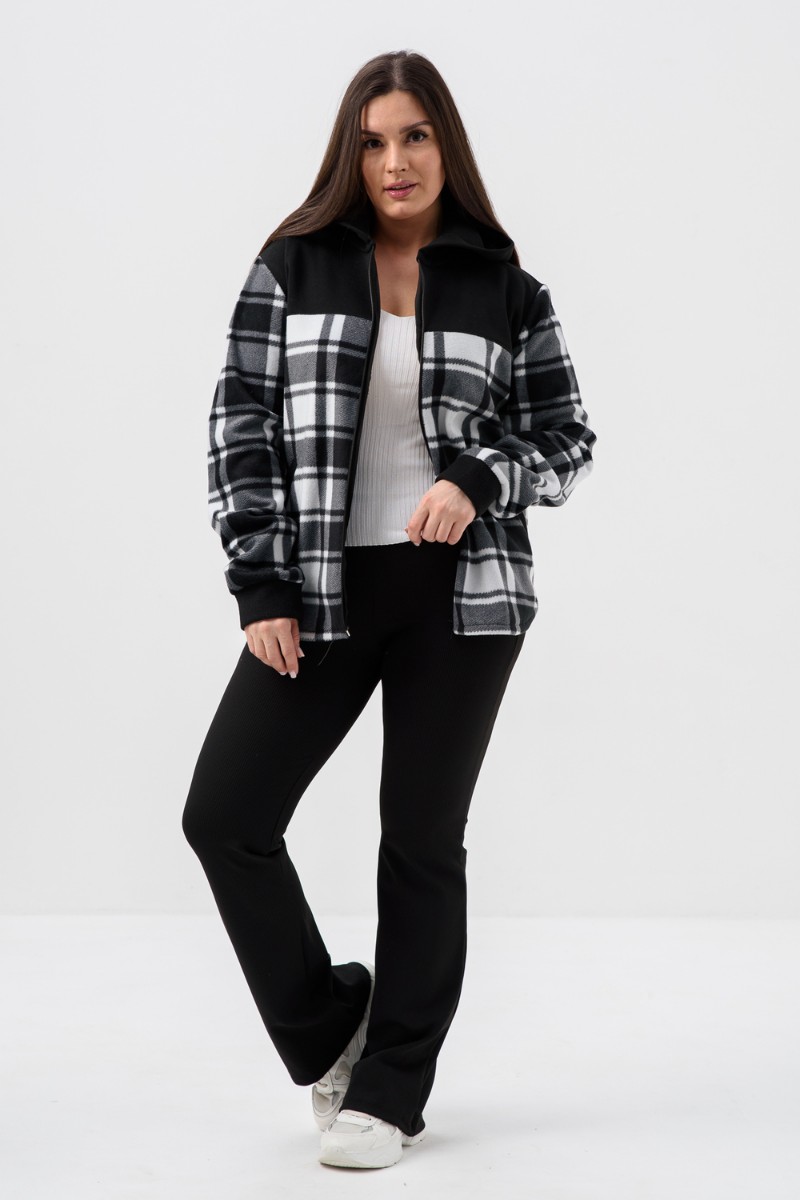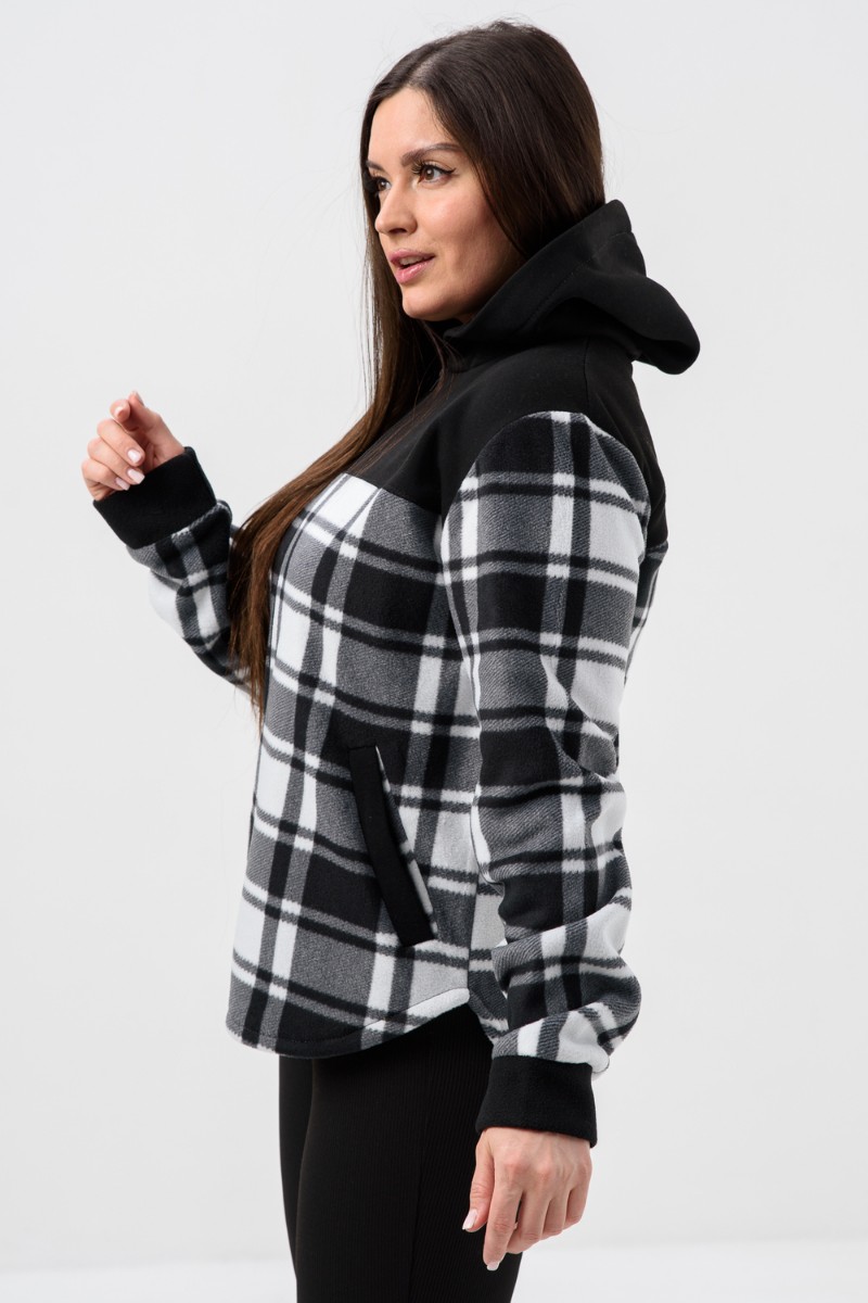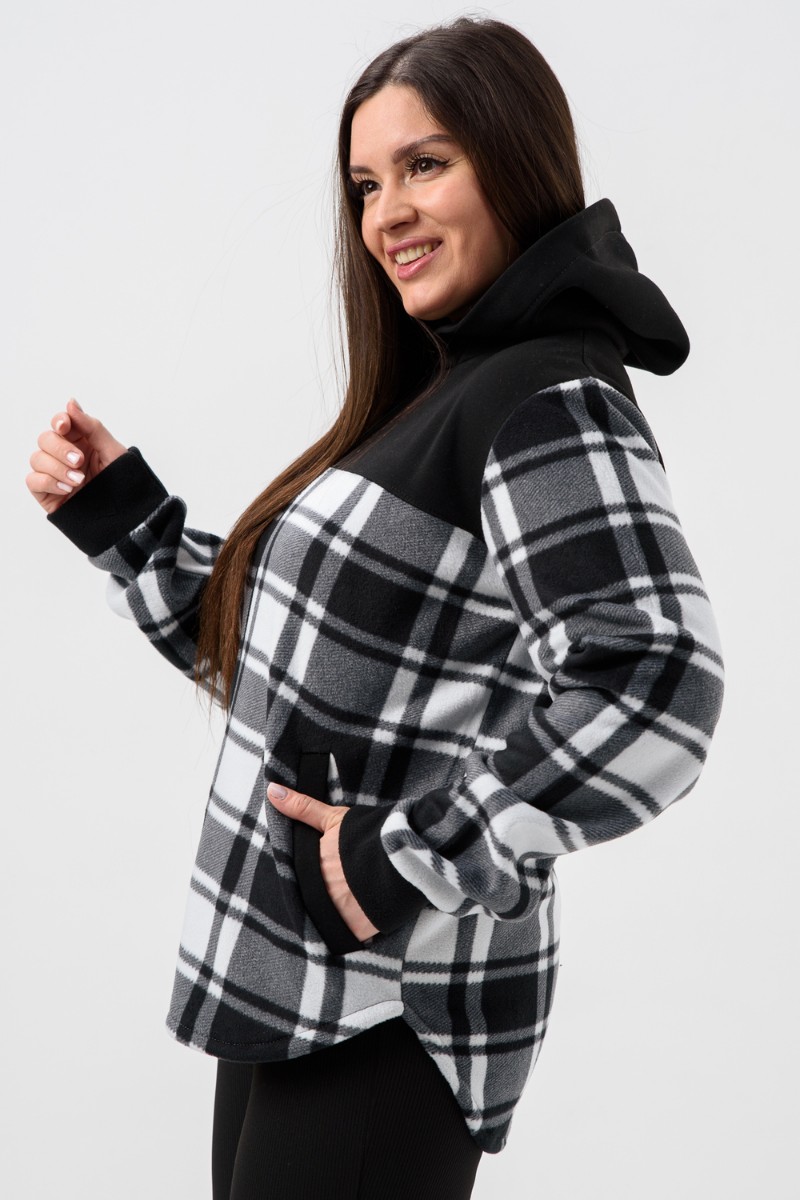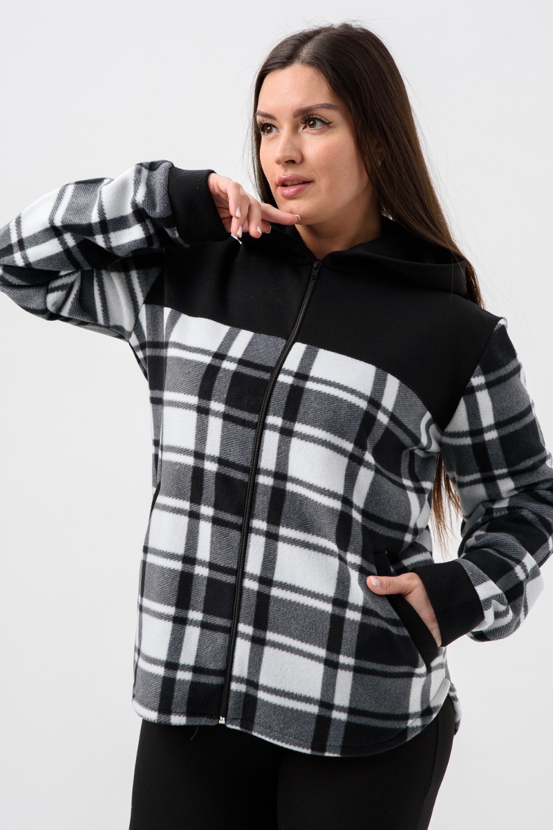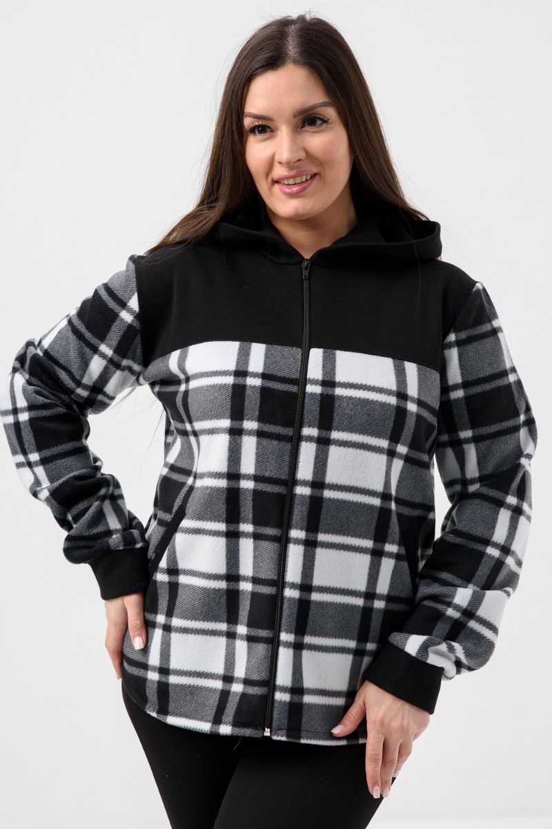 Толстовка женская №52452 флис-футер (р-ры: 44-58) черный-клетка