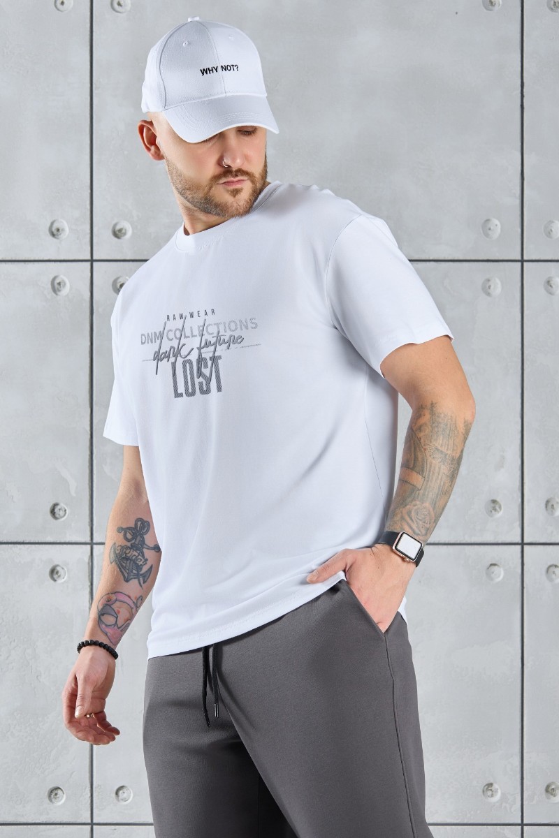 Представляем Вашему вниманию мужскую футболку из гладкокрашеного трикотажного полотна "кулирка с лайкрой" классического покроя со слегка удлиненными плечевыми швами, короткими втачными рукавами, и горловиной овальной формы, обработанной втачной планкой. На детали переда - принт, выполненный в технике шелкографии. По горловине настрочена двойная отделочная строчка. Низ рукавов и изделия обработаны подгибкой.
