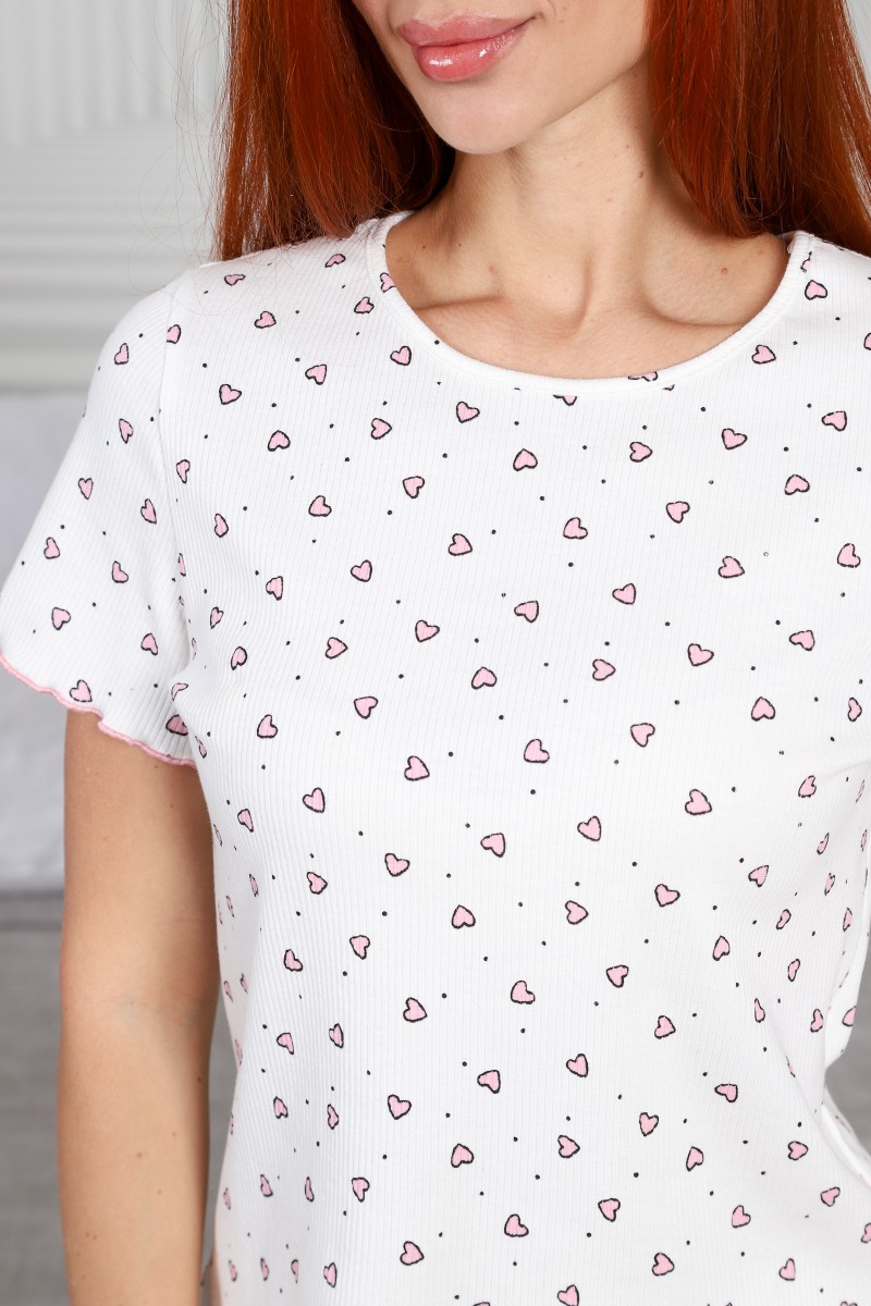 Пижама женская М-1032 трикотаж рубчик (р-ры: 42-52) розовые сердечки