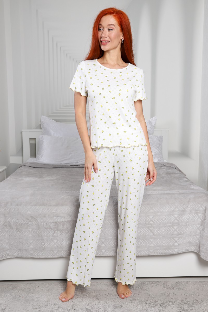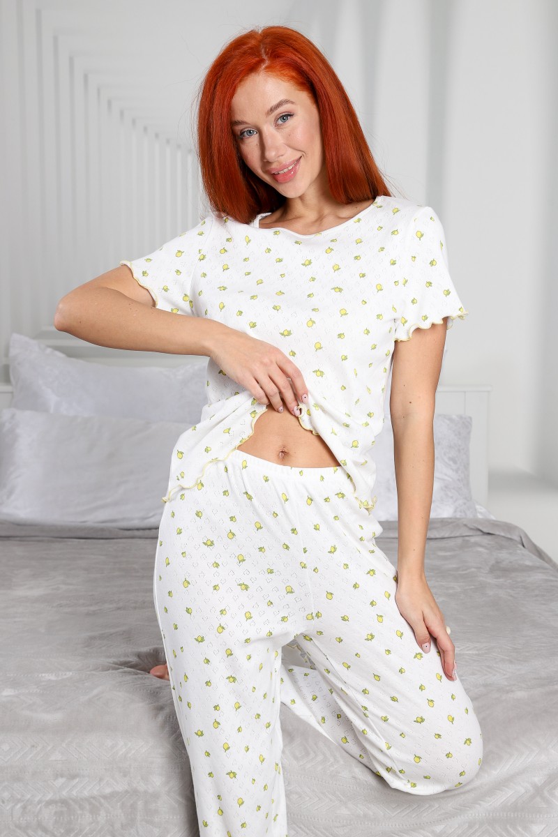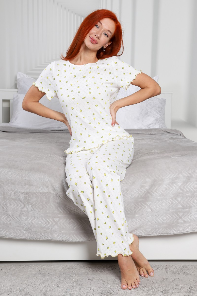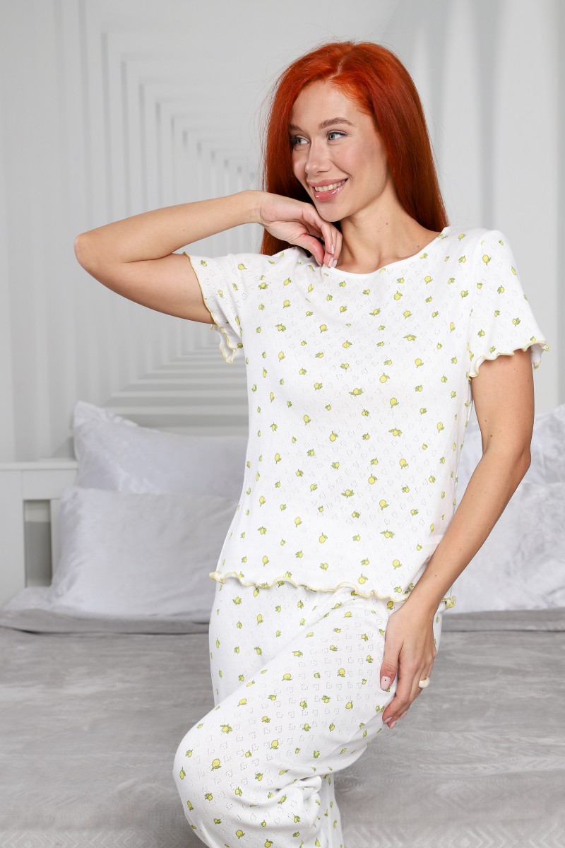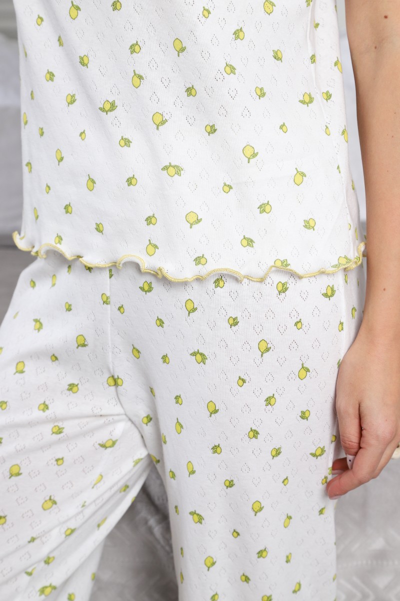 Пижама женская М-1031 ажурная рибана (р-ры: 42-52) лимончики