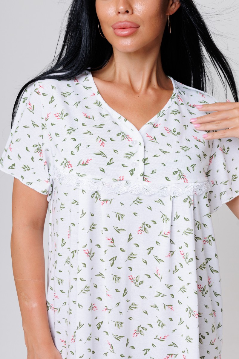 Сорочка женская 2056/5 кулирка (последний размер) зелёные листики 72,74