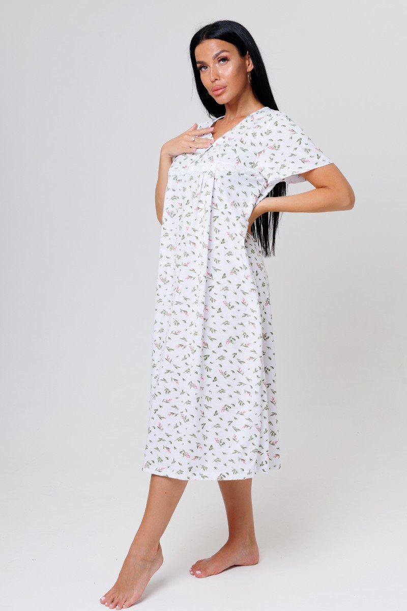 Представляем Вашему вниманию ночную сорочку свободного кроя, выполненную из кулирки - 100% хлопок. V-образный вырез декорирован пуговицами. Кокетка по линии груди отделана кружевом и дополнена складками. Ночная сорочка больших размеров от 60 до 74 подойдет на любую фигуру, а также беременным и кормящим женщинам.