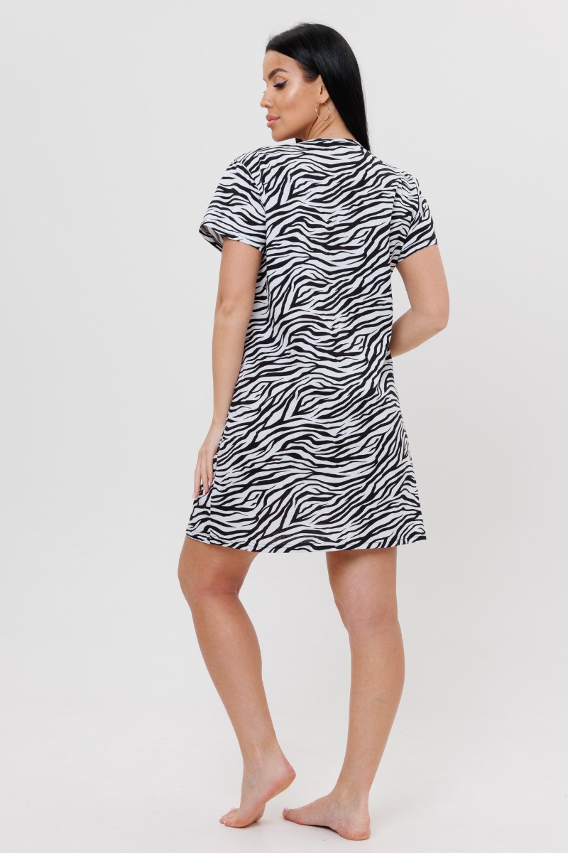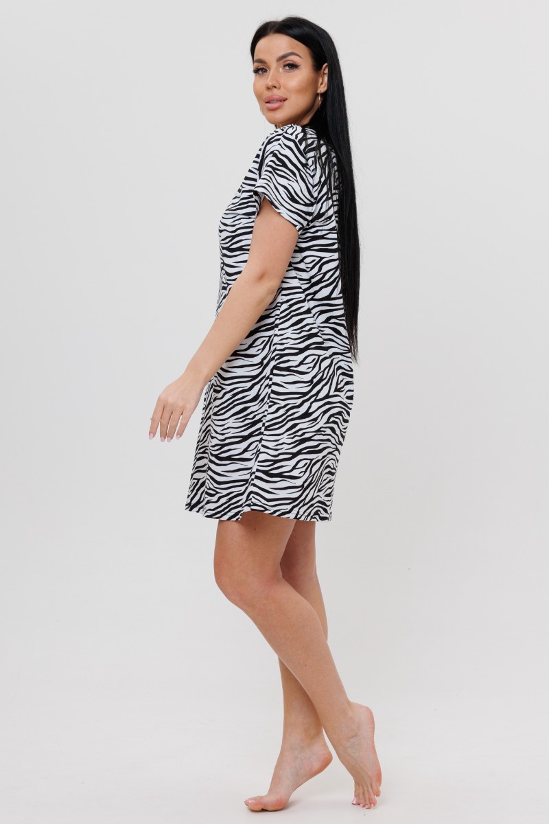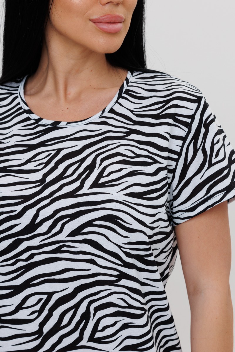 Представляем Вашему вниманию легкую трикотажную тунику с анималистическим принтом - воплощение изысканности и непринужденности. Туника выполнена из трикотажного полотна 100% хлопка. Свободная летняя туника с коротким рукавом не стесняет движений. Круглый вырез подчеркивает контуры лица. Ее легко стилизовать разной обувью и аксессуарами, создавая различные образы. Она также будет актуальна и как легкое домашнее платье.