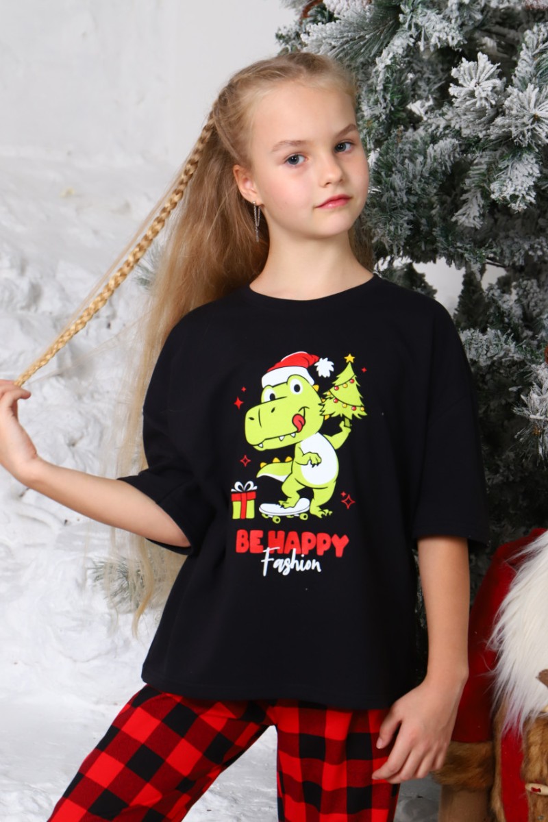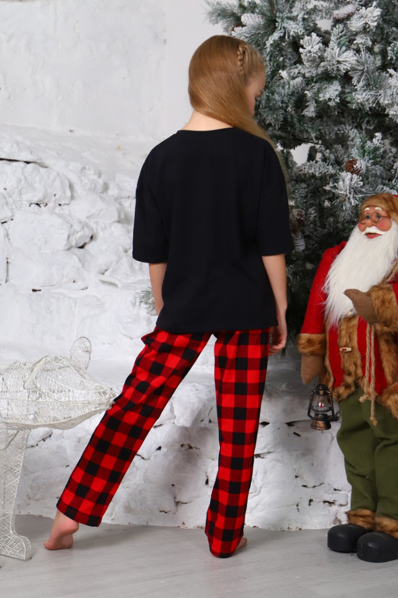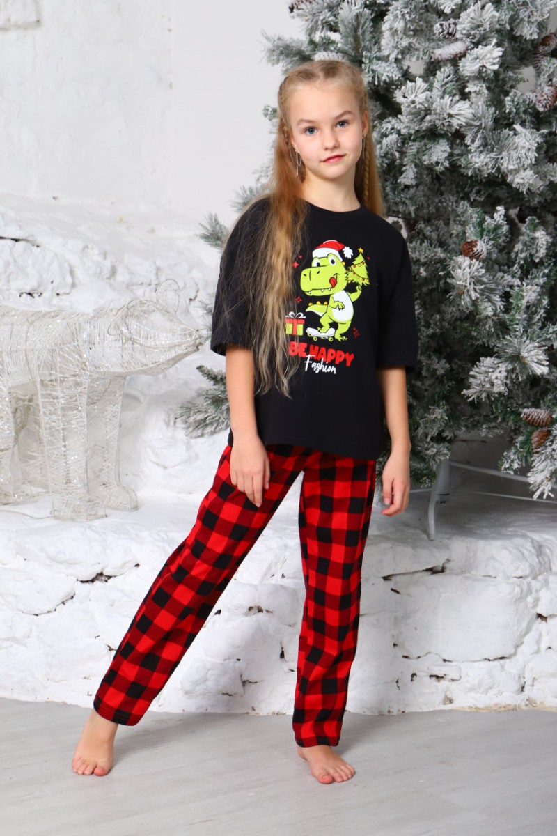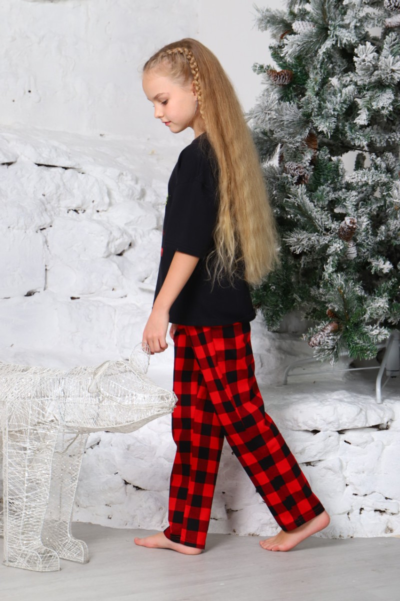 Представляем Вашему вниманию легкую детскую пижаму, состоящую из клетчатых брюк и футболки, украшенной принтом на полочке. Комплект сшит из кулирки - 100% натуральный хлопок, который отлично пропускает воздух, позволяя коже дышать.