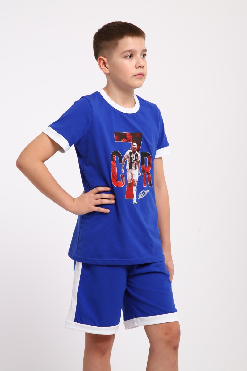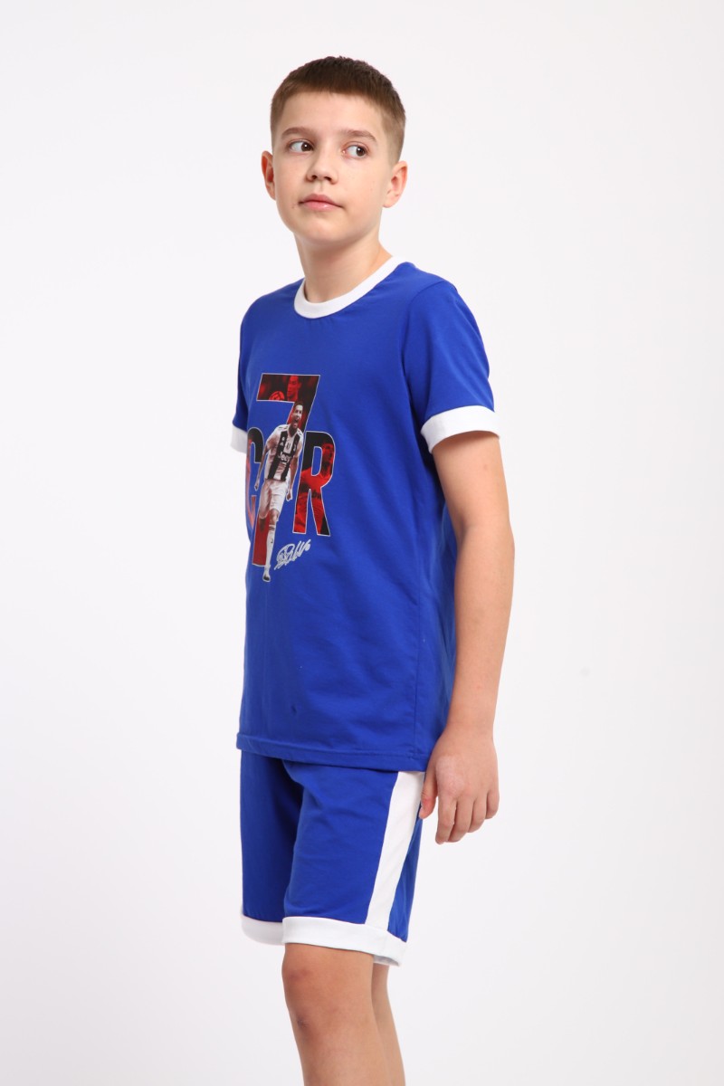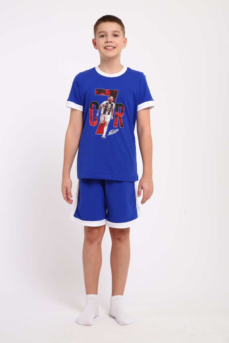 Пижама детская "Футбол" кулирка (последний размер) синий 158