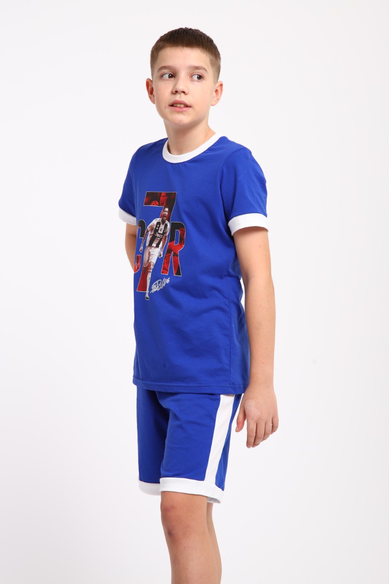 Представляем Вашему вниманию яркую пижаму с принтом футболиста для мальчика подростка из легкого трикотажа. Состоит комплект домашней одежды из кофты с округлой горловиной белого цвета и короткими рукавами и шорт с эластичным поясом. В этой пижаме для мальчика, ваш ребенок будет чувствовать себя уютно и комфортно. Трикотаж костюма домашнего из хлопка , позволяет коже дышать. Покупая нашу пижаму для детей и подростков, будете уверены, что дарите ребенку удобство, комфорт! Пижама легкая, летняя подростковая для мальчиков и юношей поднимает настроение своим спортивным принтом футболиста. Домашний комплект подходит не только для сна, но и для отдыха дома, для домашних дел. Комфортный, мягкий, удобный, легкий комплект подойдет и старшеклассникам. Крутой рисунок спортивной тематики изображает футболиста, движение, стремление побеждать.