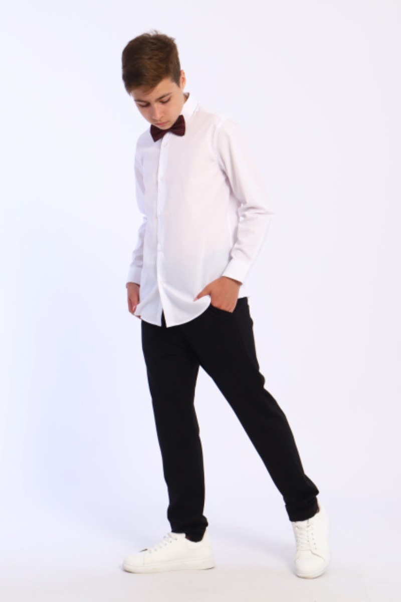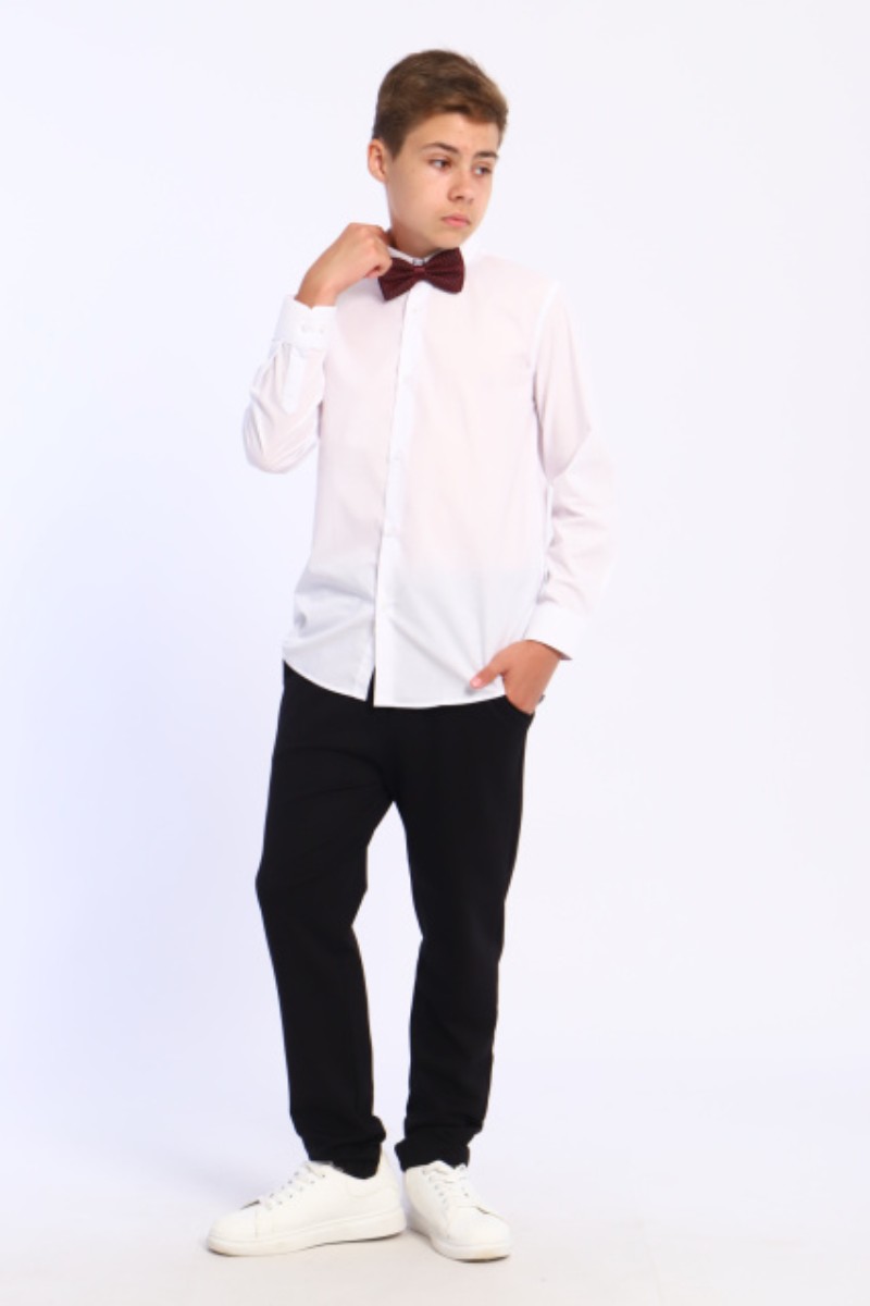 Представляем Вашему вниманию школьную рубашку для мальчиков. Сшита из сорочечной ткани с хлопком. Классическая модель на пуговицах, прямого силуэта, с длинными рукавами на манжетах.