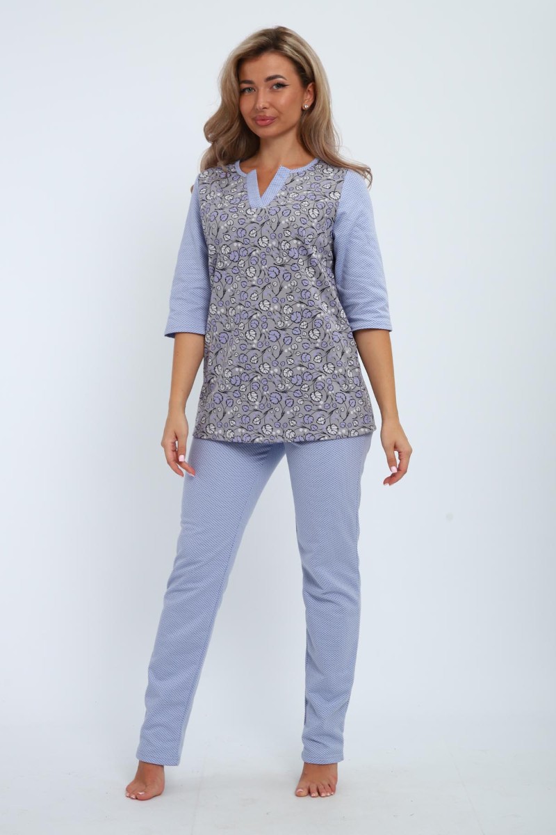 Пижама женская 01059 футер с начёсом (последний размер) серо-голубой 50,52,54