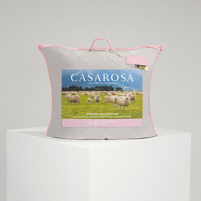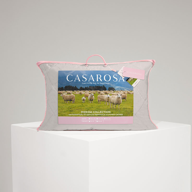 Коллекция 2-камерных подушек CASAROSA «Мерида» с наполнителем из овечьей шерсти породы меринос в стеганом чехле из натуральной плотной хлопковой ткани (сатин).