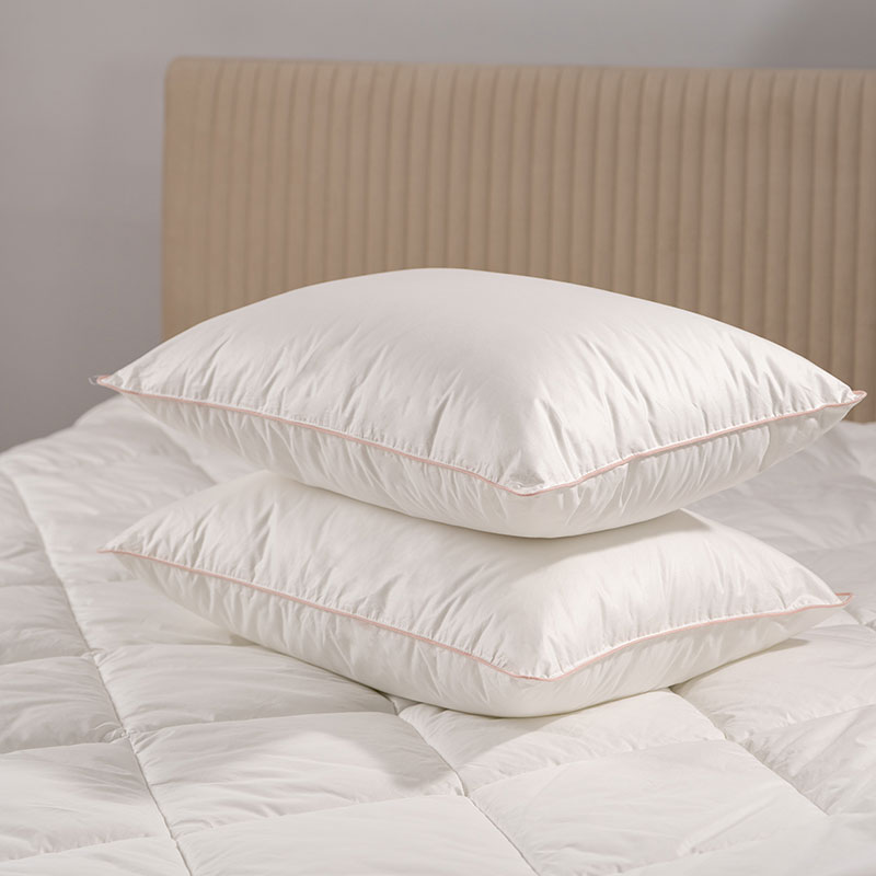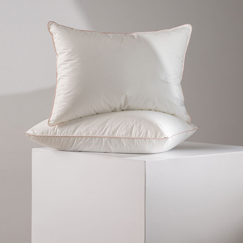 Чехол: хлопковый тик — плотная, износостойкая ткань для подушек; помогает удерживать наполнитель внутри и служит дольше.