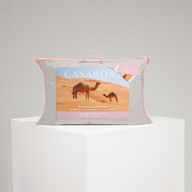 Наполнение 2х-камерное: отборная верблюжья шерсть + упругое полиэфирное микроволокно «лебяжий пух» (down-alternative) для стабильной формы и лёгкости.