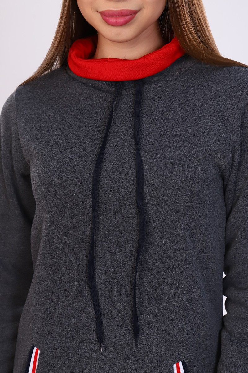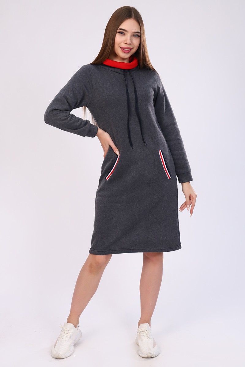 Платье-толстовка женское №52231 футер 3-х нитка (последний размер) графит 44,48,54