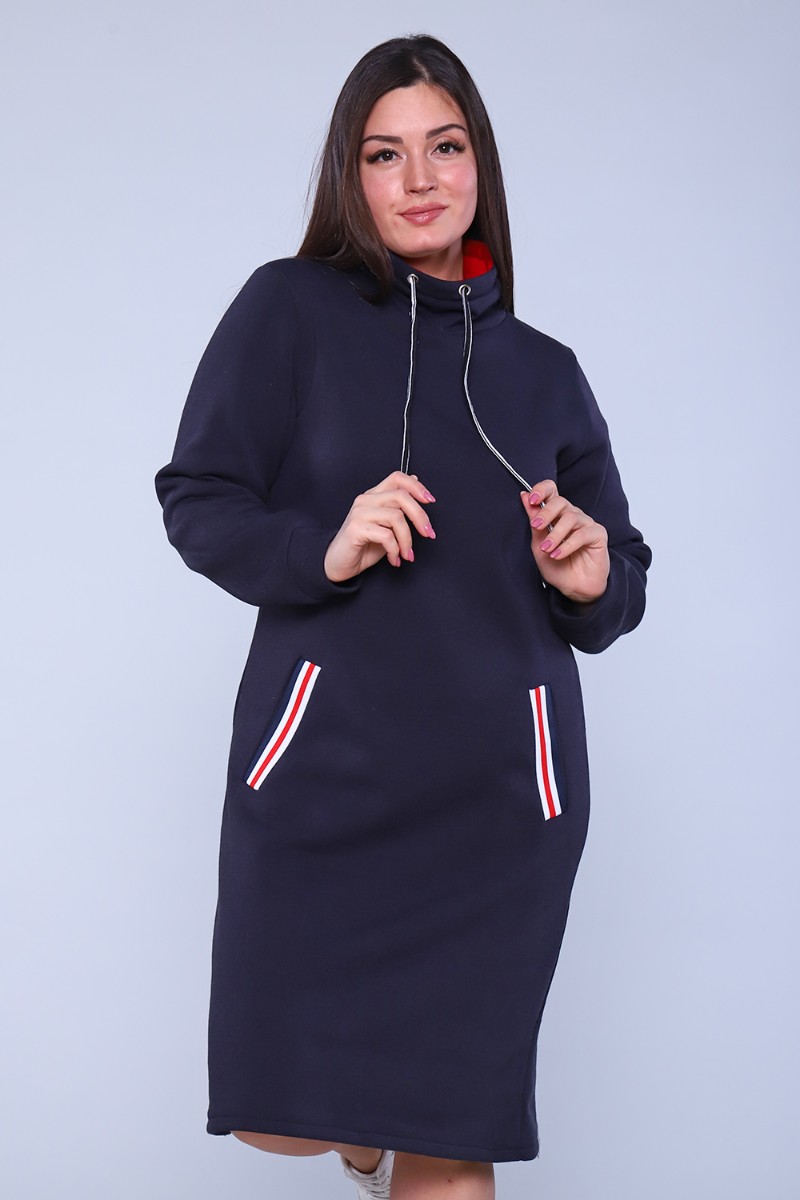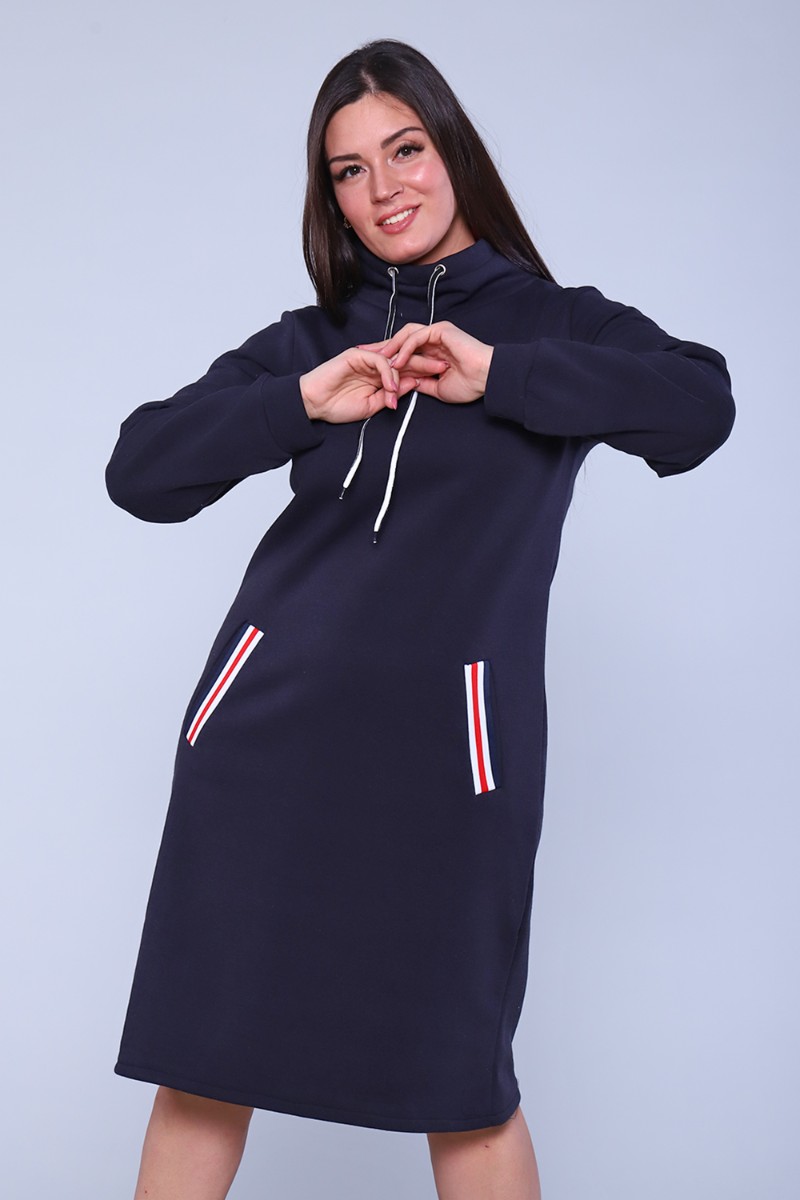 Платье-толстовка женское №52231 футер 3-х нитка (последний размер) темно-синий 52